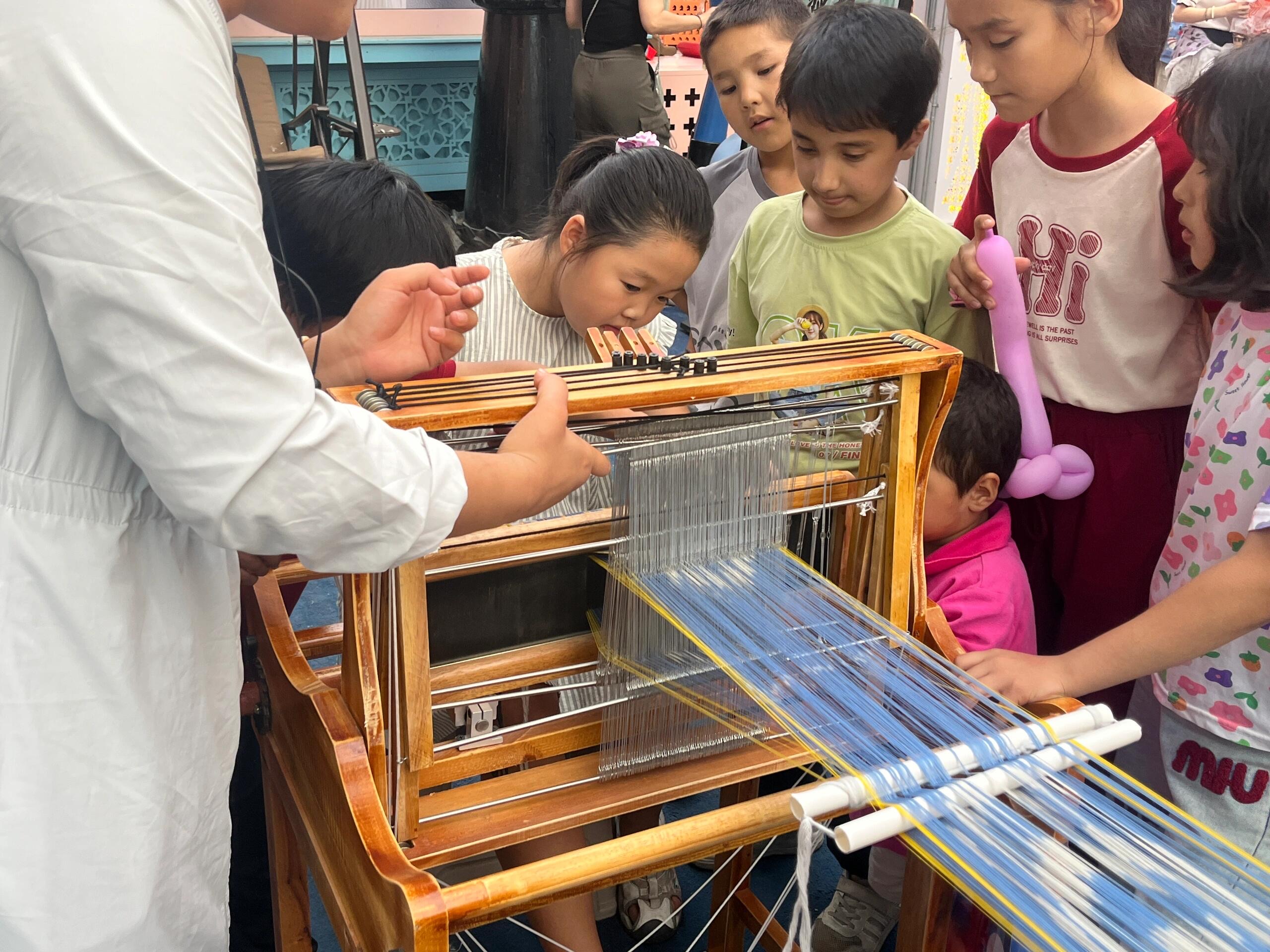 最后在园区体验艾德莱斯绸纺织,看匠人如何将丝路的霞光纺入布料,感受非遗文化的魅力。