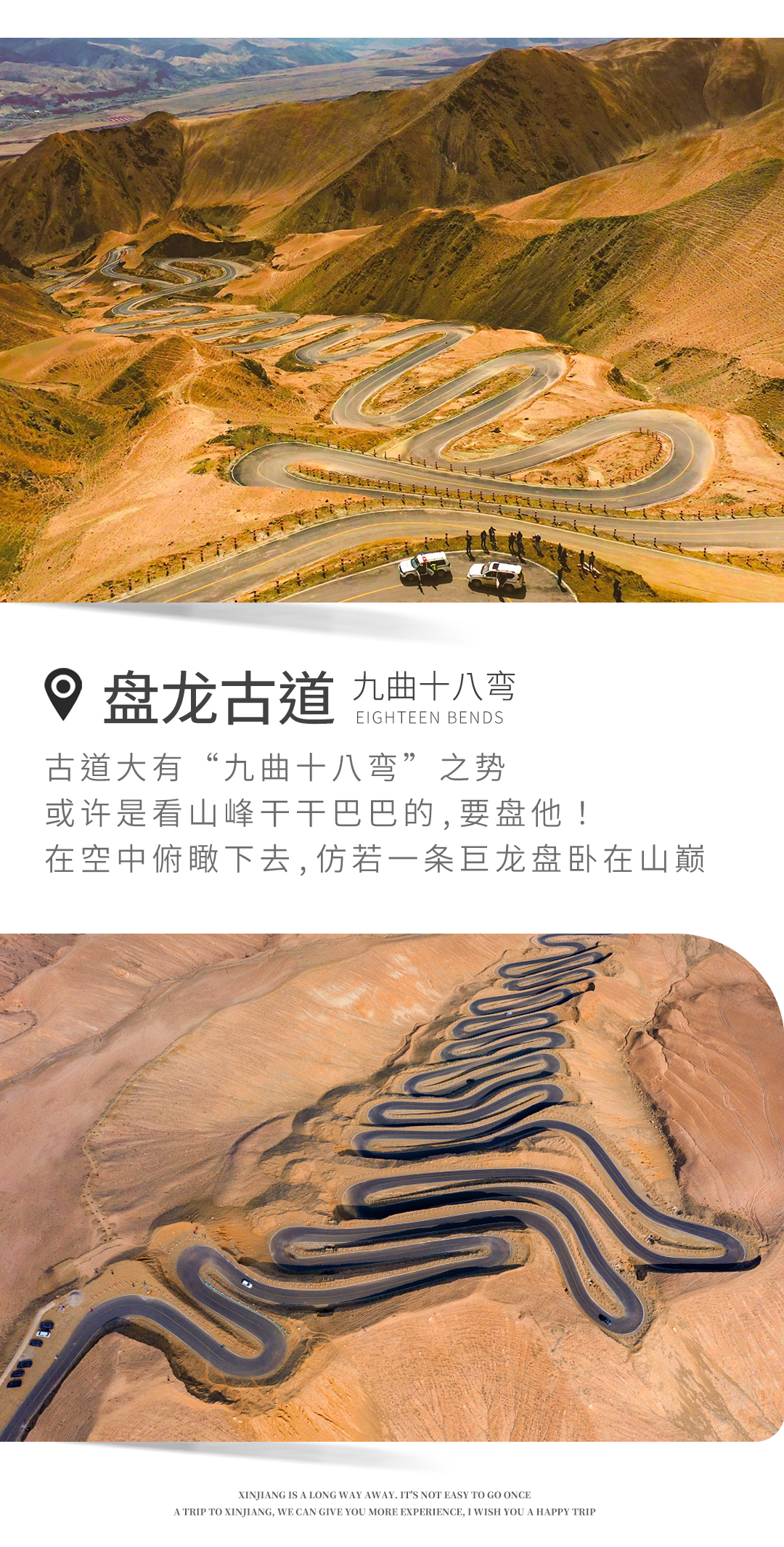 中午午餐后抵达【盘龙古道】,盘龙古道全长36公里,最高海拔4,200米,落差达1,000米,公路从山顶到山脚共有600道S弯。 这600多道弯完美演绎了魔幻、神奇、壮丽与刺激。盘龙古道分为大盘龙和小盘龙。大盘龙弯度很大,但弯道不密集,沿途有许多观景台可供游人观赏风景;小盘龙道路蜿蜒而下,极具挑战性,无论是视觉体验,还是驾驶体验,都会让人心潮澎湃,肾上腺素激增。