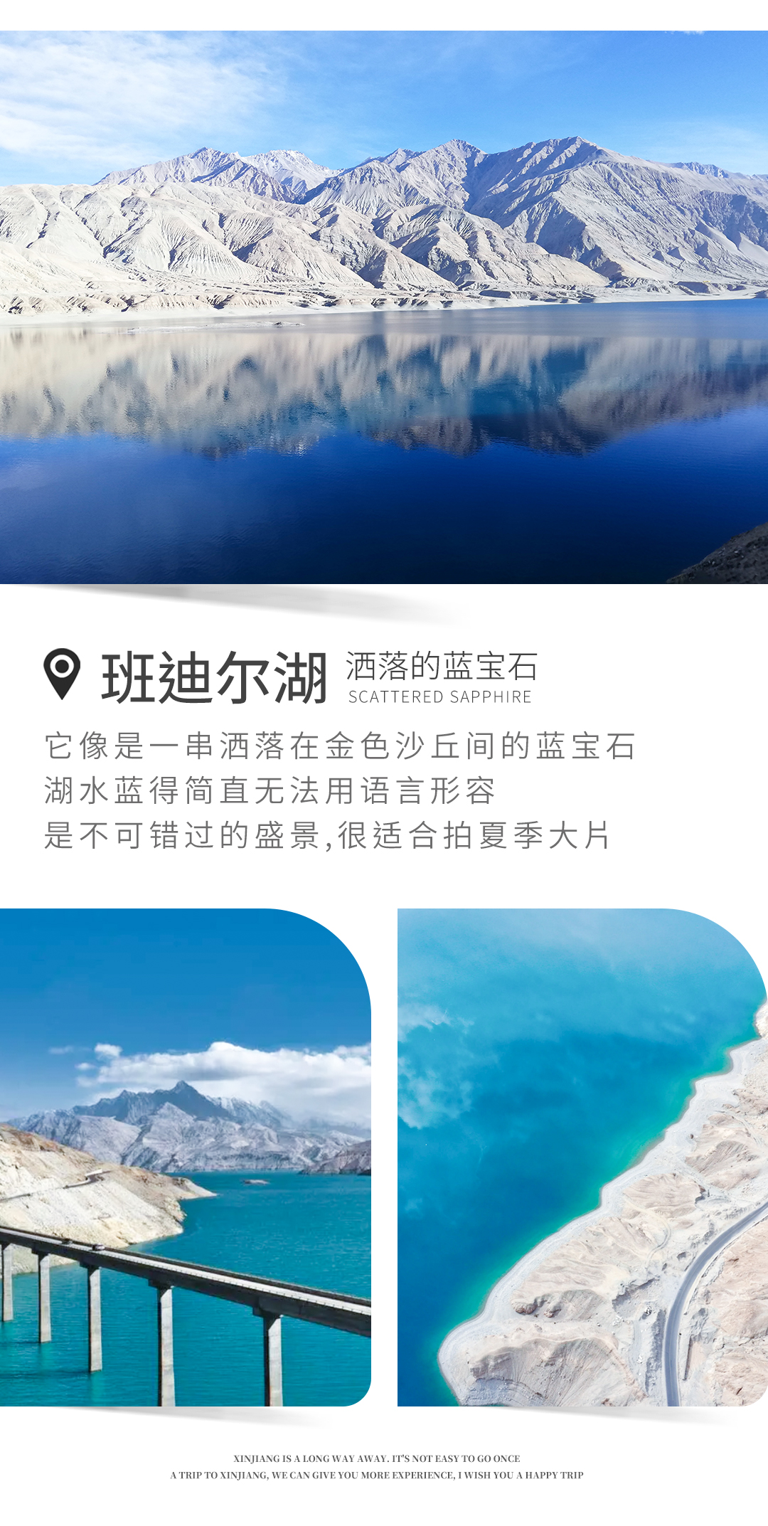 随后抵达【班迪尔湖】,又名下板地水库。班迪尔湖是五个相连的湖泊,是世界上最人迹罕至也最雄伟壮丽的自然奇观。这里是我国最西部帕米尔高原的第一高峡湖,峡谷内沟壑纵横,烟波浩森,天地与山水浑然一体,景色蔚为壮观,成为帕米尔高原上 一颗耀眼的明珠。