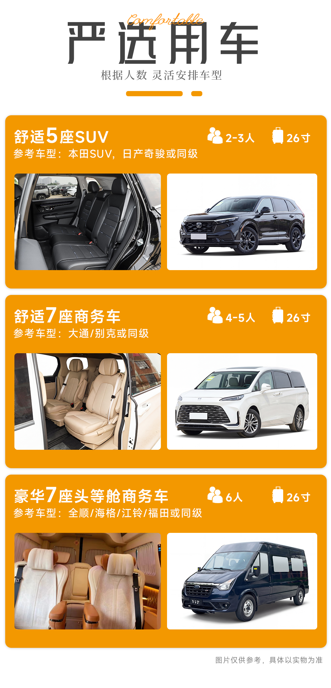 2-3人安排5座SUV(哈佛/奇骏/本田或同级),