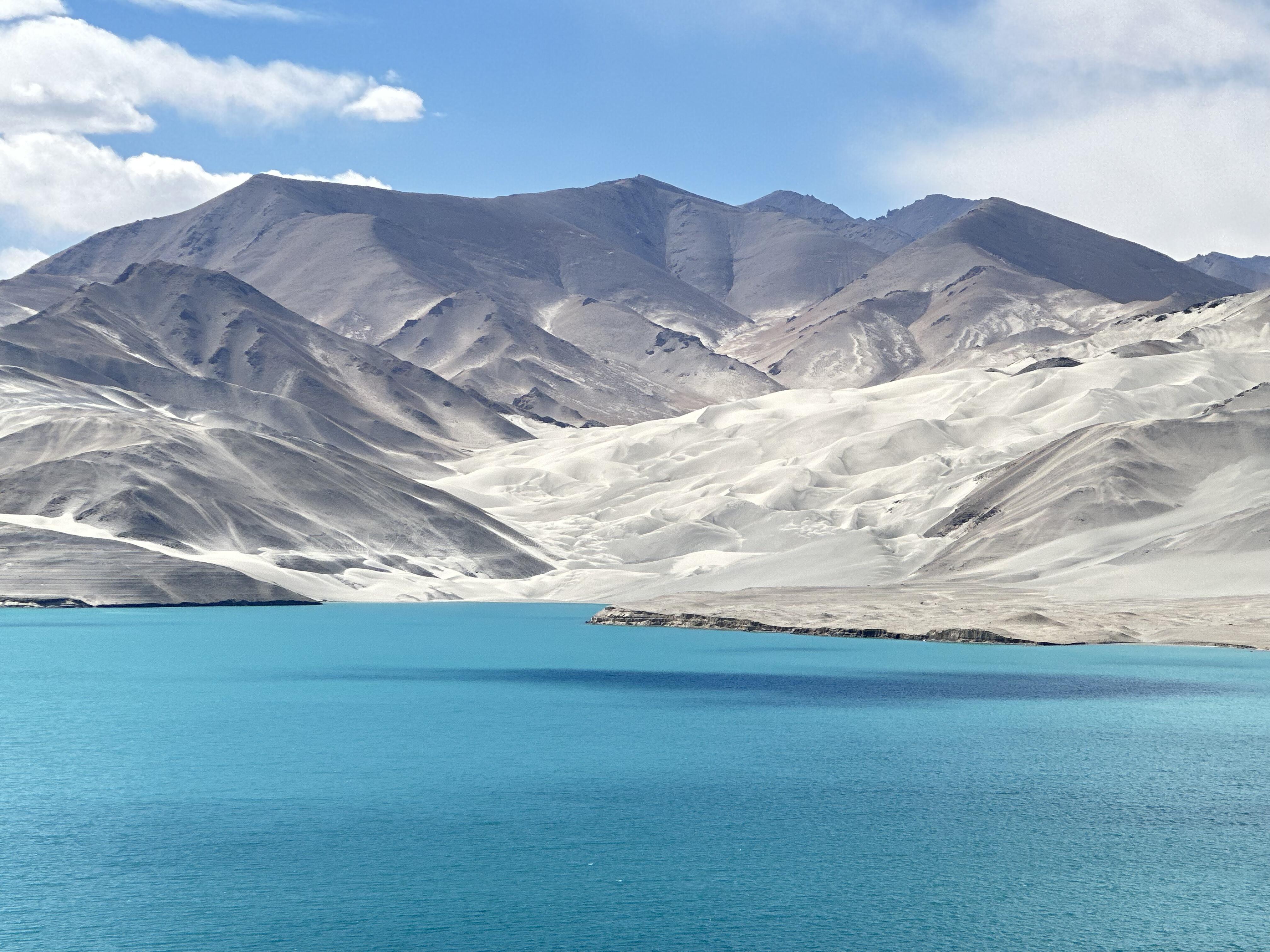 随后停靠白沙湖北岸,与南岸的白沙湖不同,北岸的白沙湖少了游人的拥挤,更能独享这片美景,白沙湖中拥有碧蓝的湖水,远处是散落一地洁白色的沙子,而在湖泊的四周远处则是皑皑雪山。整个白沙湖都被四周的雪山团团包围住,四周高大的雪山犹如像一位慈祥的“母亲”一样守护着这片高原湖泊,让它不被外界打扰。