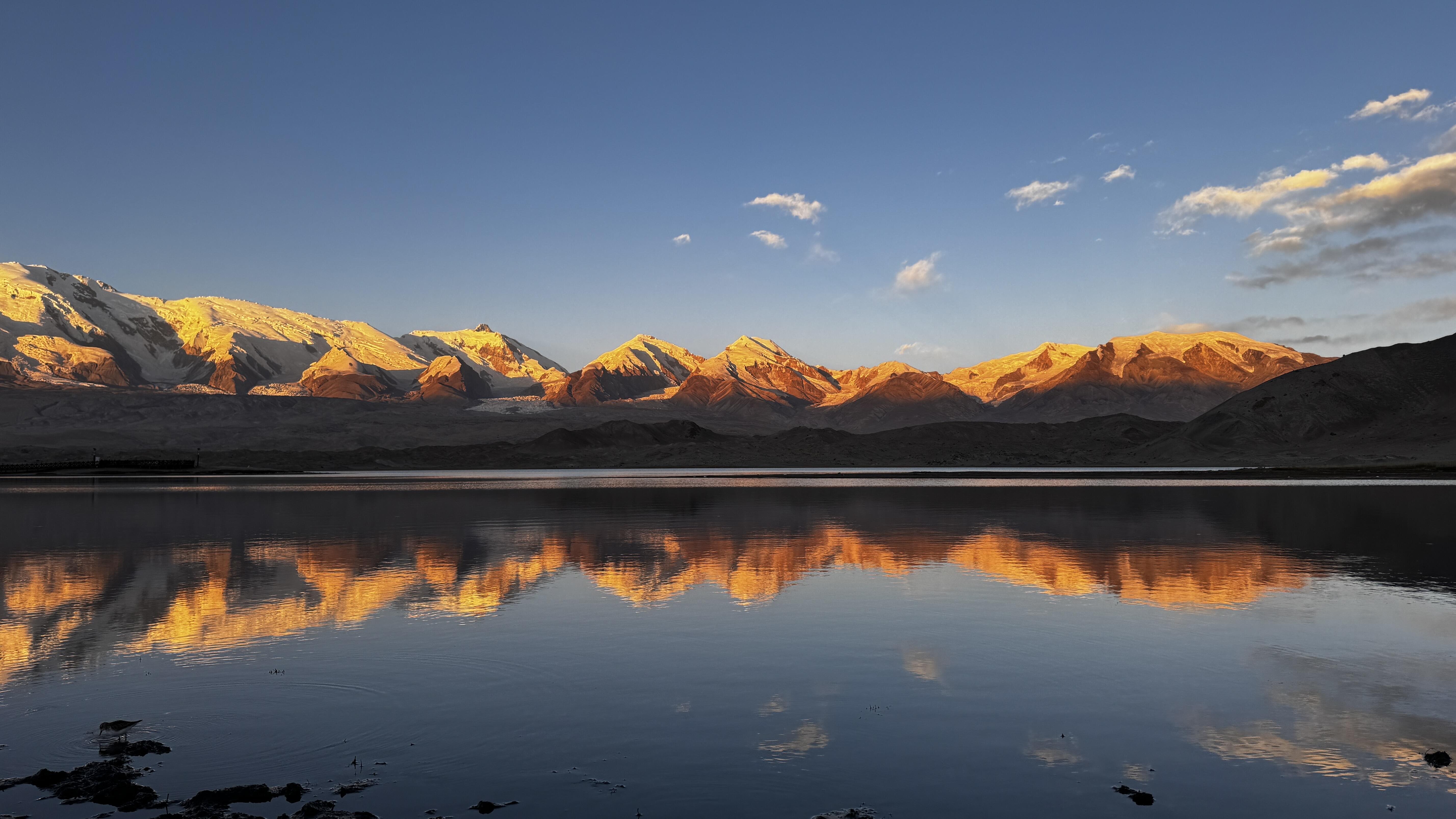 一路前行抵达卡拉库里湖,这里海拔3600米,被慕士塔格峰、公格尔峰和公格尔九别峰环绕。湖水随光线变幻蓝绿,倒映雪山,是古丝绸之路的必经之地,柯尔克孜族牧民世代在此放牧。