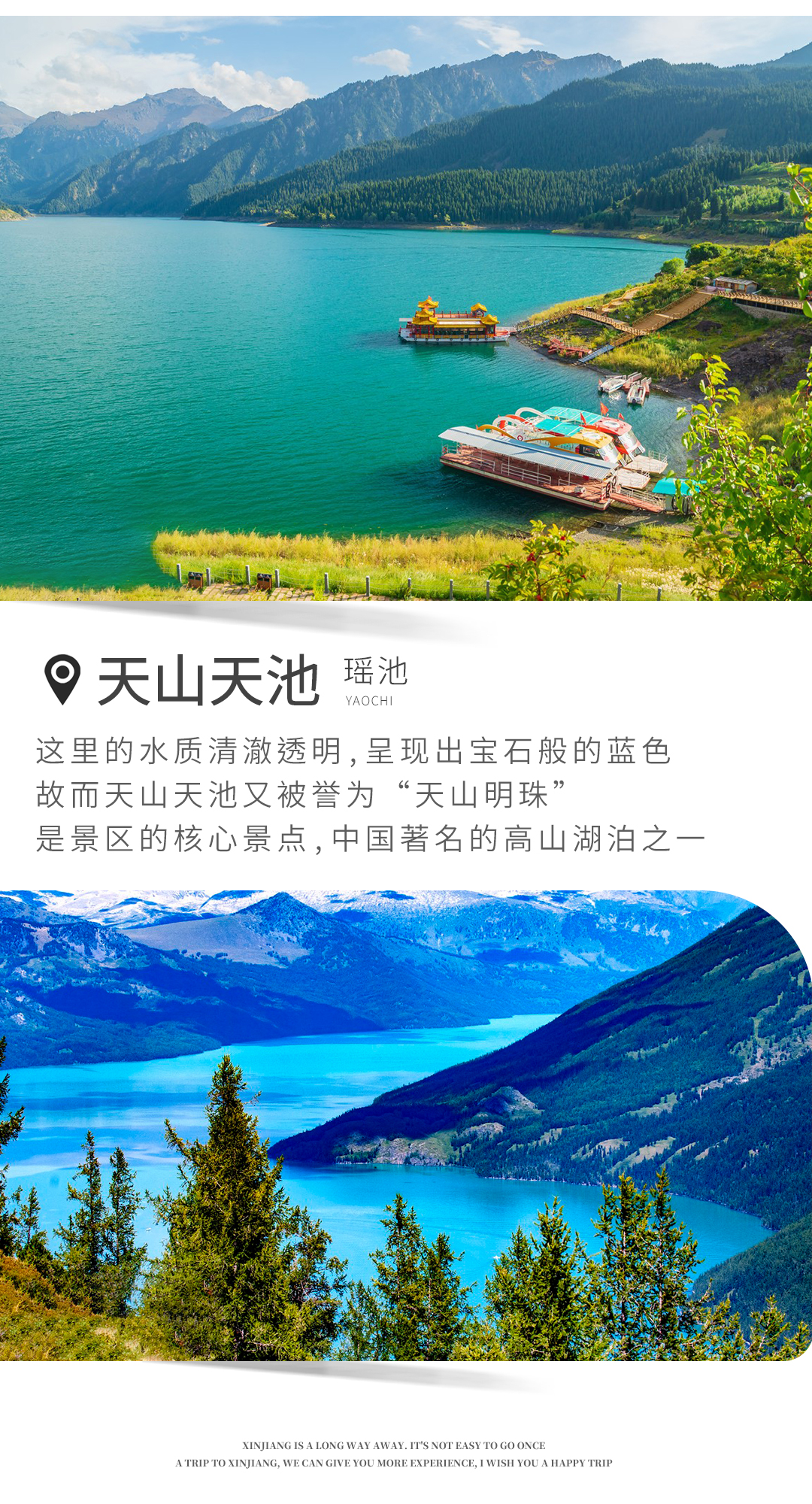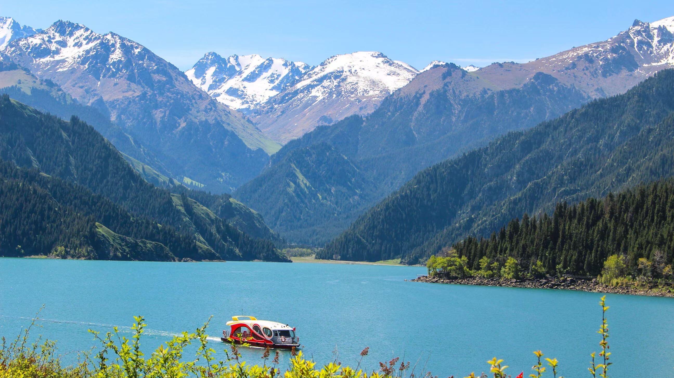 早上从乌鲁木齐出发,第一站抵达天山天池,天山天池镶嵌在博格达峰下的蓝宝石,湖水清澈如镜,倒映着雪山与森林。传说中西王母的瑶池,集高山湖泊、冰川、森林于一体,是新疆最负盛名的自然奇观。