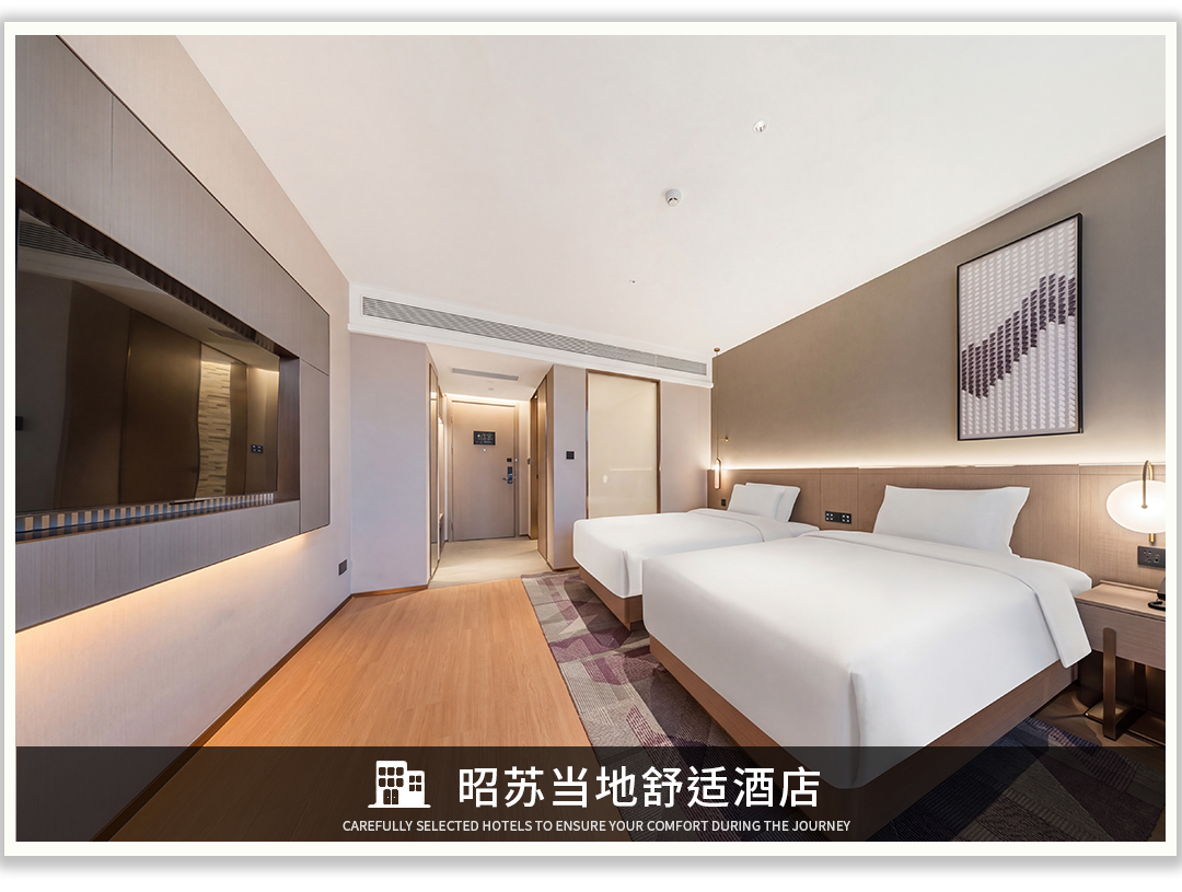 乌鲁木齐当地精品酒店两晚,精河县当地舒适酒店一晚,昭苏县城当地舒适酒店一晚,特克斯当地舒适酒店一晚,那拉提当地舒适酒店一晚,巴音布鲁克当地精品酒店一晚;