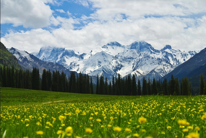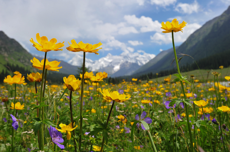 之后我们前往夏特古道。夏特也称为夏塔,连接天山南北,在户外圈中名气很大,被户外界称为“玄奘之路”,多年以来,穿越夏特古道是很多强驴心中的夙愿。今天我们安排大家行走的是景区内最精华的一段休闲线路,一路上绿草茵茵,鲜花满布,中间的夏特河水时缓时急,奔流向前。天气好的话,天山山脉第2高峰---汗腾格里峰清晰可见,一览无余的展现在你的面前,而且一路上也可以看到很多的旱獭(土拨鼠)在草地坡地上晒太阳或是四处乱窜。随后前往特克斯入住。前往路上风光也依然很美,每年5月底阳光下的昭苏大草原风吹麦浪直抵雪山脚下,熠熠生辉;而6、7月漫无边际的油菜花犹如一条条黄色的织毯席卷着广阔无限的昭苏大草原,就像那一望无际的金色海洋,与天山遥相辉映,堪称西部盛景。