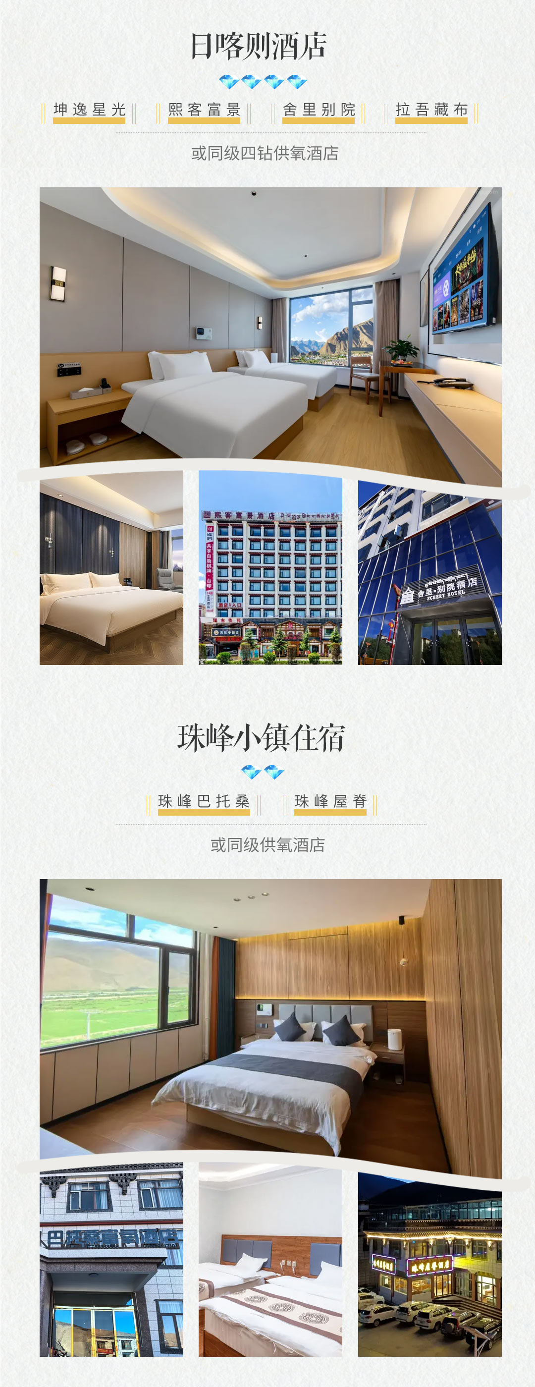 2、【住宿】旅行全程住宿费用,包括珠峰民宿,酒店二人间,详情如下: