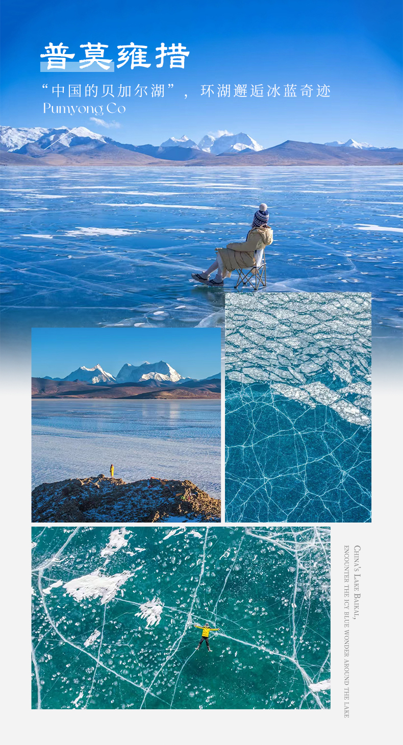 早餐后出发,沿着洛扎河谷一路上升,翻越海拔5363M的【蒙达拉山口】,在这里回望库拉岗日雪山群之后;到达【普莫雍措】岸边,夏天这里是一片绿蓝,堪比贝加尔湖;冬季则是厚厚的蓝冰覆盖,风景非常漂亮。如果你是深冬季节造访,普姆雍措还会呈现另一种美丽的景观一一冰封凝固的西藏蓝,整个湖面被厚厚的冰层覆盖。下午前往西藏三大圣湖之一的【羊卓雍措】,开车沿着湖边前行,羊湖朗布其观景台,看风光无限的羊湖美景。这里的日出和日落是最漂亮的,羊湖在层层洁白的云朵下,美景让人惊叹;从另一个角度拍摄你不曾见过的羊湖,还有许多鸟类,岩羊、藏原羚等野生动物,随手一张都是大片!之后经贡嘎机场在晚上7点左右回到拉萨,行程结束后散团;天下无不散之筵席,但我们相信相逢的人会再相逢。