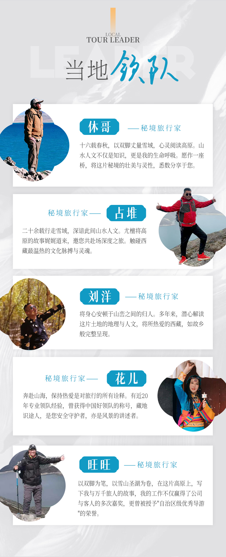 领队为大家讲解藏传佛教的文化、行程向导,并保证一团一证。(持证不代表他们像传统导游一样无趣,是为了保障团队的资质和安全。他们靠谱专业,文艺2B,负责行程安排和组织分享与交流的平台,只为了让你的旅行满满真实和快乐的回忆)。