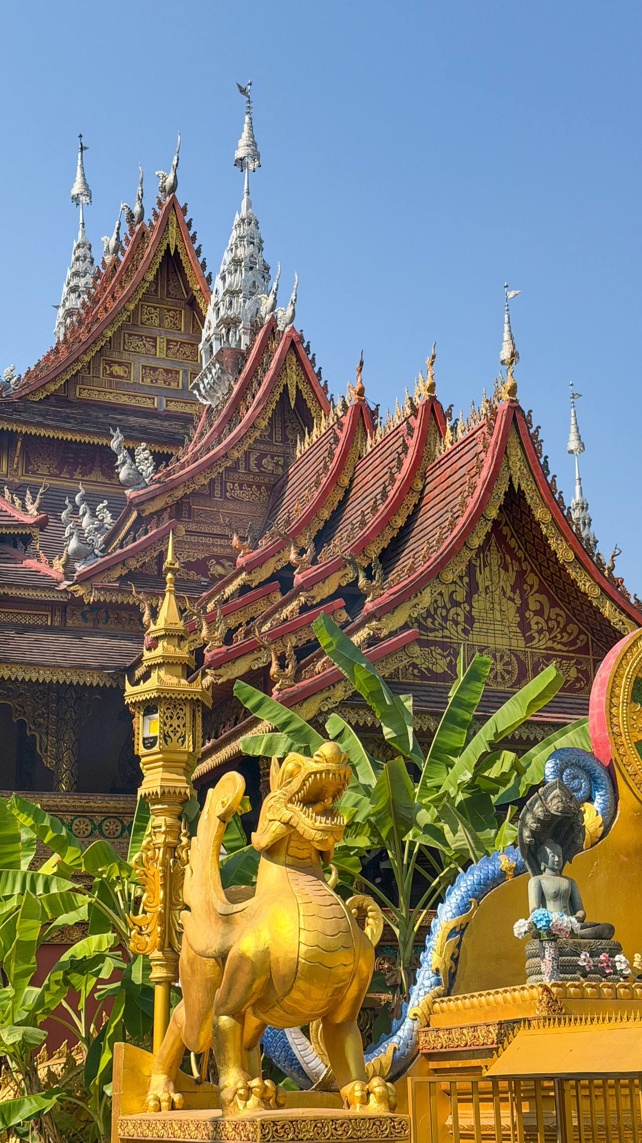 早餐后,我们前往曼听公园和总佛寺。这座寺庙与曼听公园相连,是西双版纳佛寺中等级最高的佛教建筑。它金碧辉煌却又静谧庄严,拥有厚重的历史和精美的雕刻。漫步其中,您可以感受到南传佛教的独特魅力,带着一颗虔诚的心,为家人朋友祈福许愿。