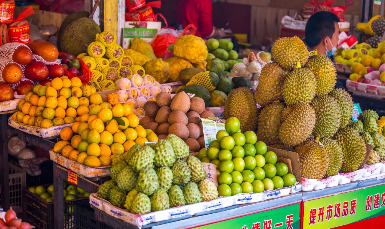 随后,我们带您走进【东南亚热带水果市场】。这里是版纳最有人间烟火气的地方之一。来自缅甸、老挝、泰国及当地的各种奇珍异果在这里汇聚。您可以看到比脸还大的大青芒、浑身带刺的蛇皮果、香气浓郁的鸡蛋果……您可以在此尽情采购,将这份来自热带的新鲜与甜蜜打包,作为伴手礼带给远方的亲友。