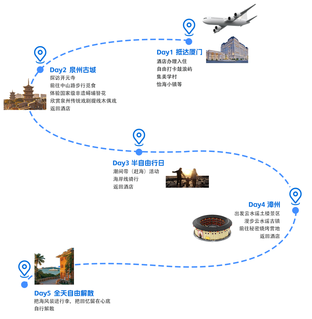 温馨提示:该天不含送站,请合理规划时间自行返程,可参考站点:厦门站/厦门北站/厦门高崎机场