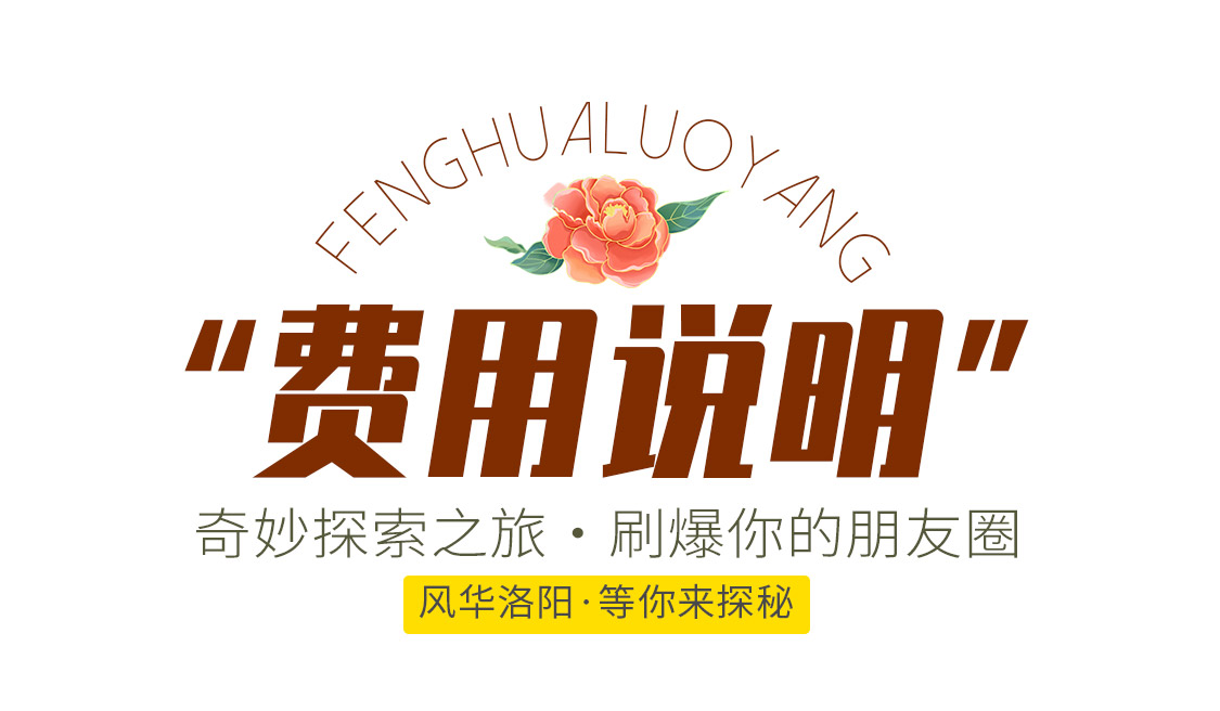 4、行程所列景点首道门票费用:八里沟门票,天界山门票,少林寺门票,洛阳牡丹园门票,龙门石窟门票,白马寺门票,老君山门票,风穴寺门票(凭有效证件产生门票减免的,退还相关费用);