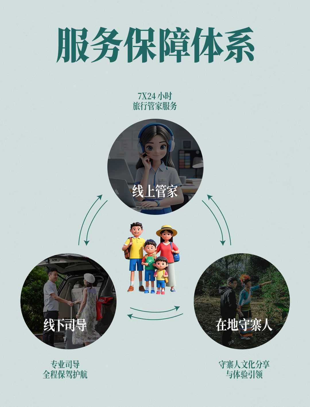 每团配置1名司机管家、负责沿途的景区玩法讲解,二官寨及溶洞探秘司机管家陪同进入,其他景区司机管家不进。