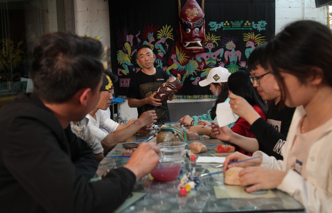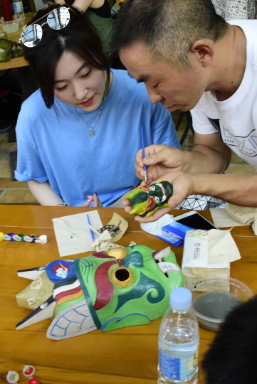 在一次又一次与傩文化的接触中,了解恩施非遗傩面的文化和历史,在传承人老师的指导下,一起绘制一副属于自己创意的傩面。