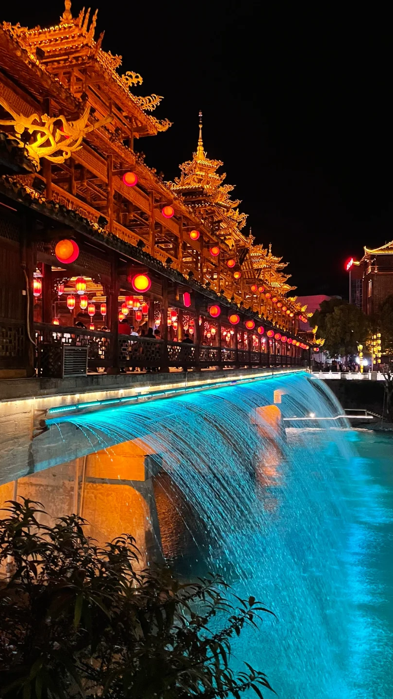 在宣恩这个浪漫小城,一河两岸,灯光璀璨,半城烟火半城仙。国内最长的音乐跑泉在此欢快跳跃,宛如仙女的丝带在空中舞动。晚上漫步贡水河畔,走上风雨文澜桥,感受湖北小洪崖洞浪漫夜景。
