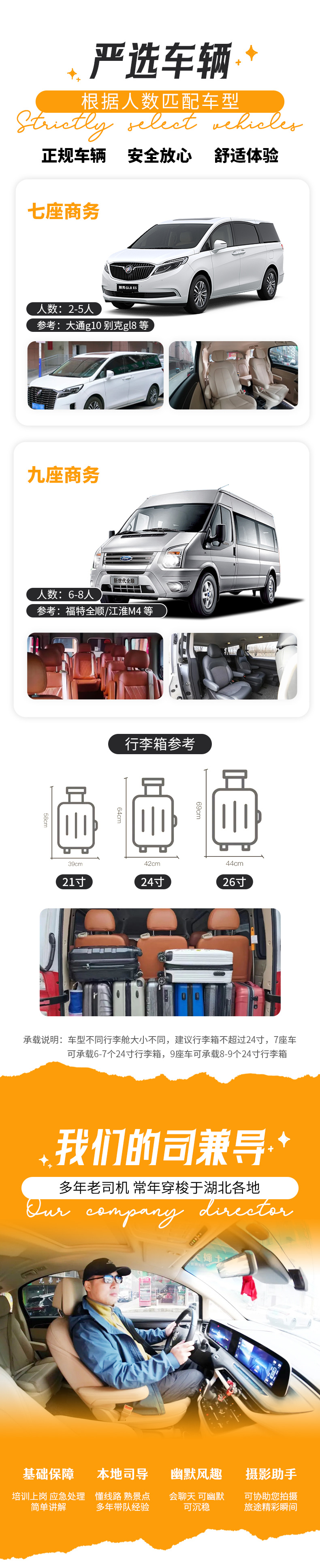 6-8人安排 九座商务车(司机兼导游)