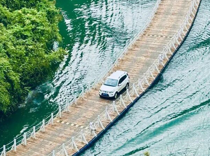 早餐后我们乘车前往【狮子关网红桥】,狮子关为宣恩三大古雄关之一,这里现在被亲切的成为“廊桥遗梦”,道未动水先漾,形成了一道天然的风景。从上方俯瞰,蜿蜒的浮桥横亘在水面上,每逢有车经过时会有奇妙的水波纹,让人惊叹不已;行走至浮桥上,两岸层峦叠翠,让人心旷神怡,景区还有体验水上闯关项目及划船,漂流等自费项目;