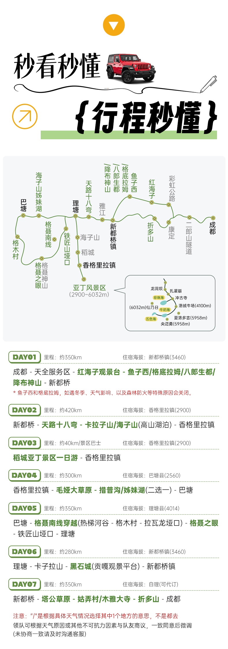 注:4人越野小团不会额外收取鱼子西/格底拉姆/八郎生都摆渡车费用。