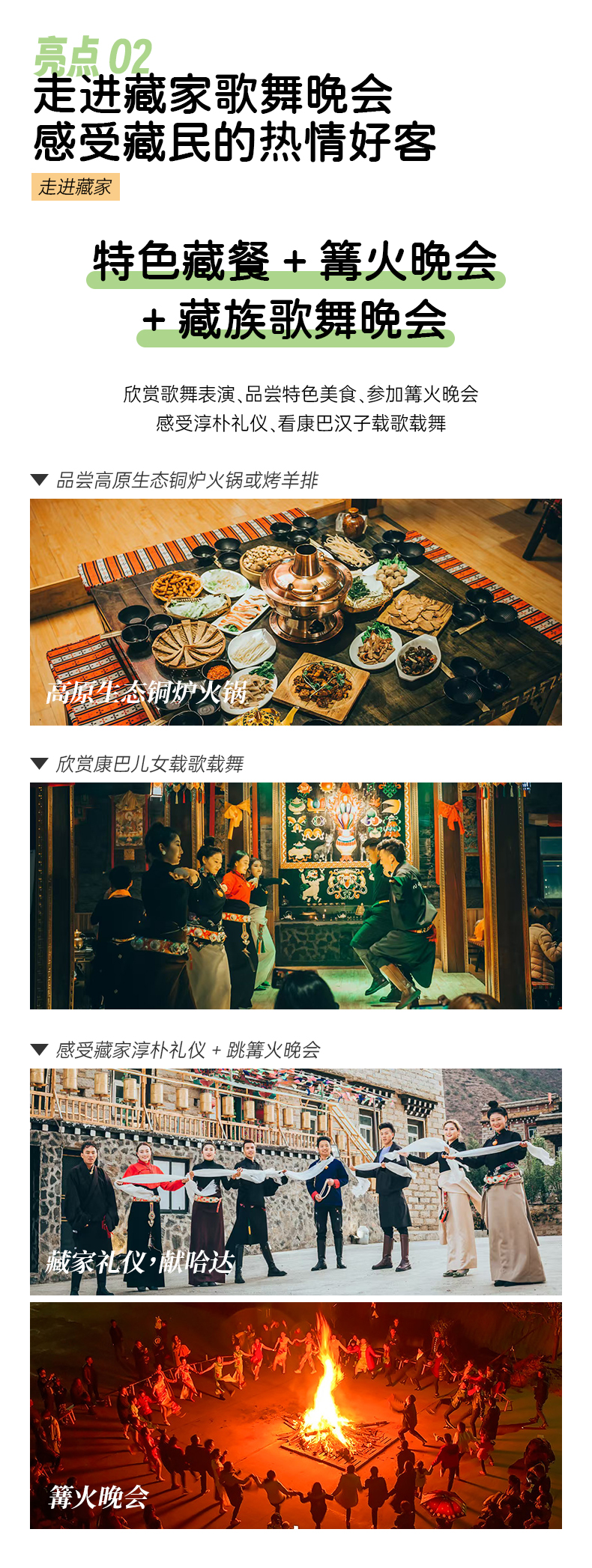 赠送特色土火锅+篝火晚会+藏族歌舞表演晚会;