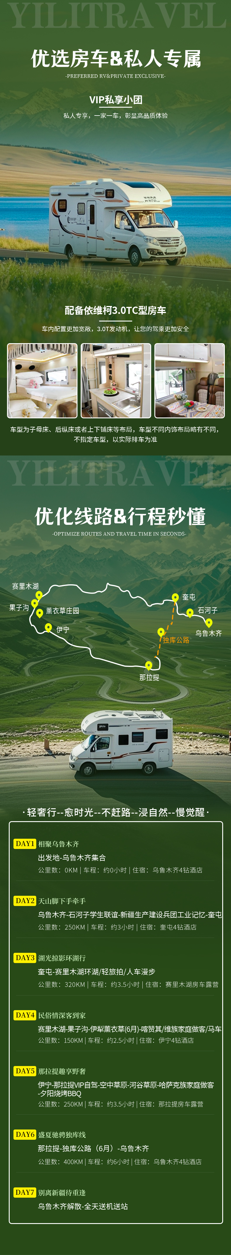 3、用车:一团一房车,选用依维柯3.0T房车,包含油费、过路费、司机食宿费用;