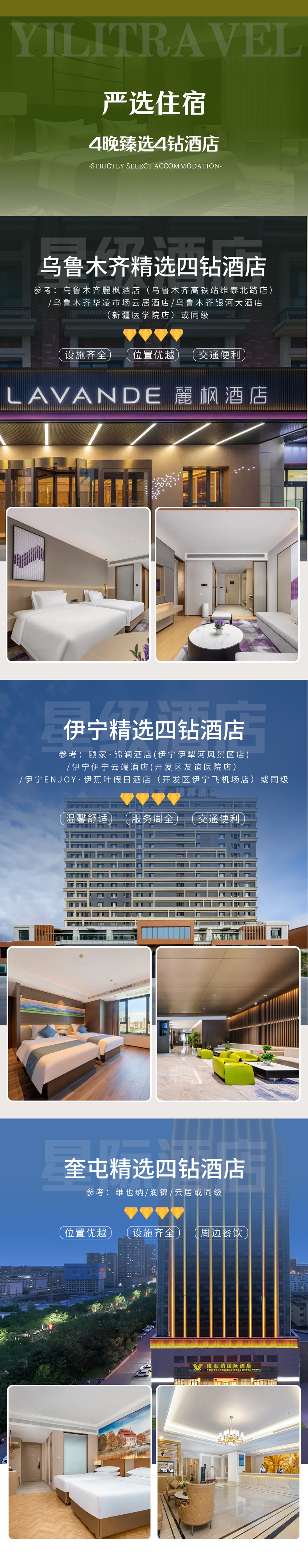 备注:钻级标准参考携程钻级标准,未挂星。新疆经济较为落后,酒店较南方酒店略差,敬请谅解。