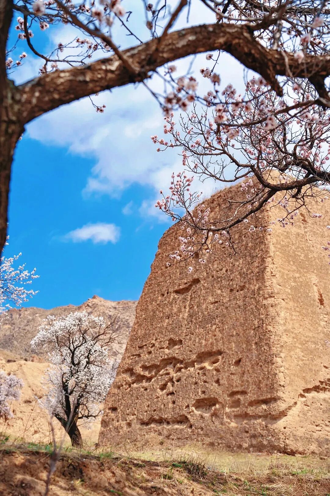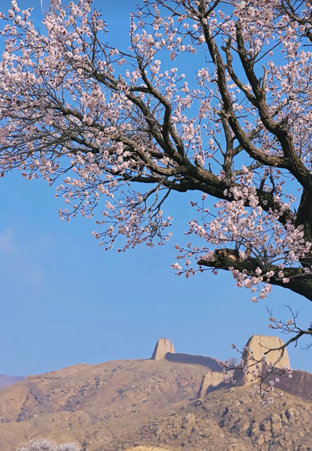 四月中旬大同守口堡,杏花争相怒放