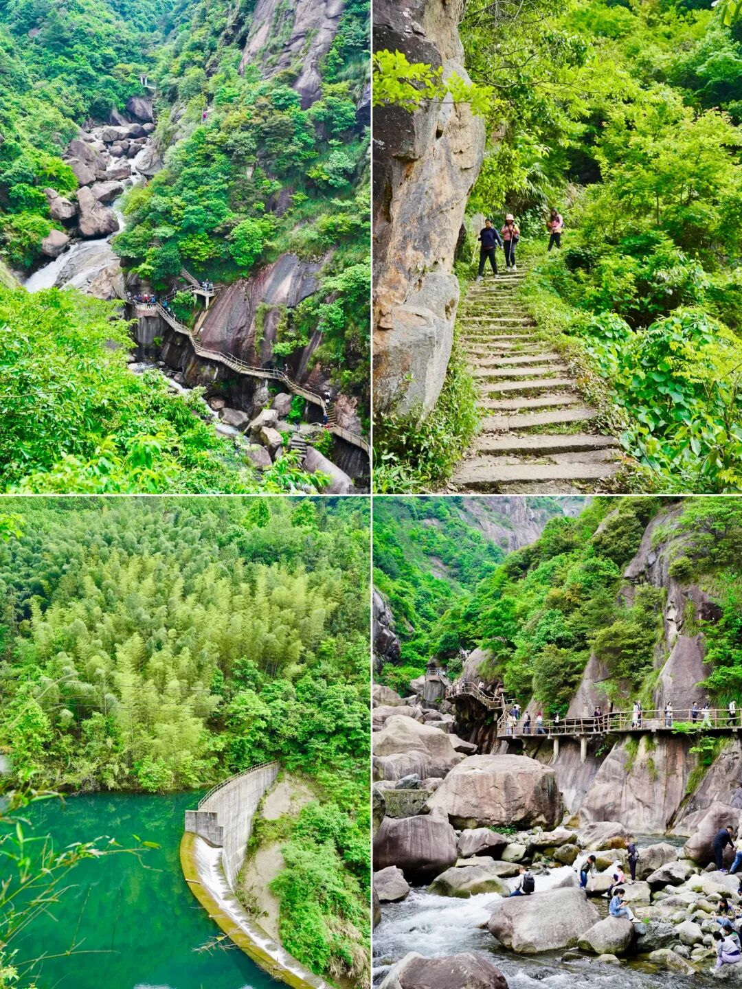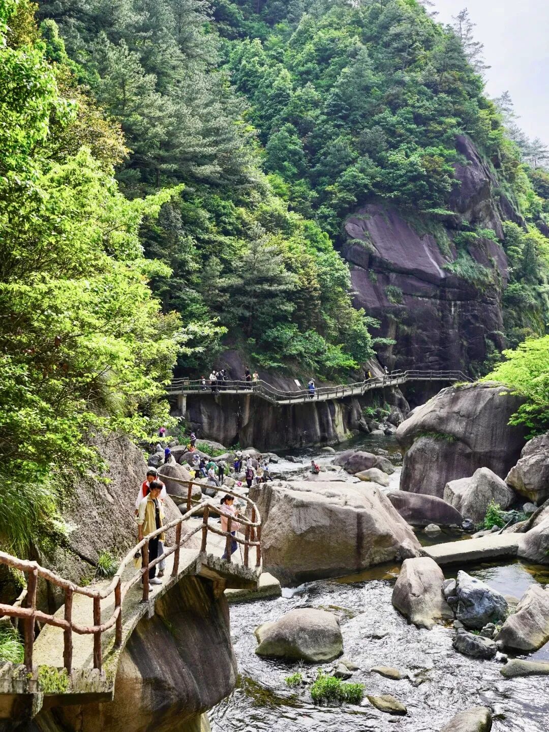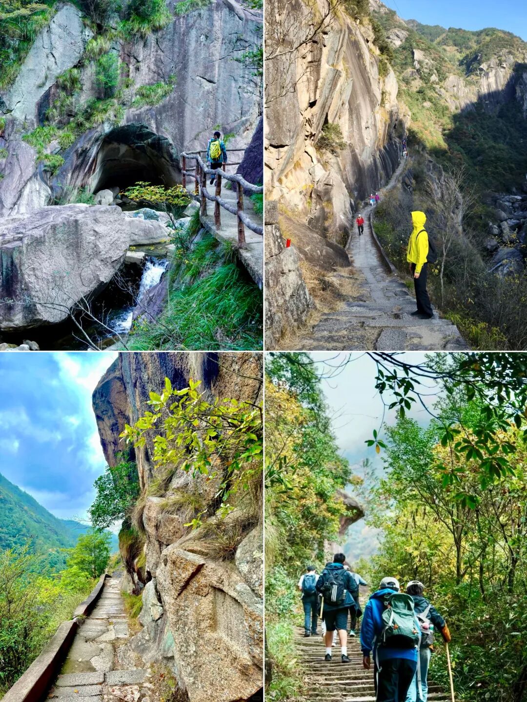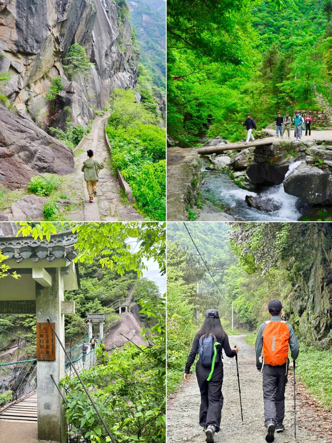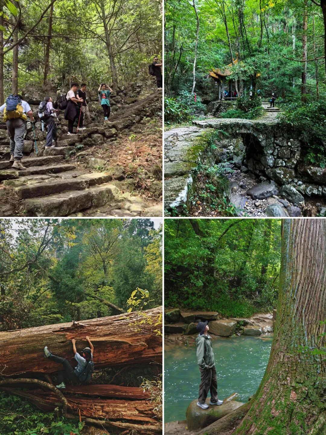 - 跟着领队我们先来到【源禅寺】,逛一逛这座山里的古寺。随后开始大树王景区徒步,原始森林既视感迎面扑来,整个眼界峰峦叠翠,古木葱茏,更附加奇岩怪石之险,有流泉飞瀑之胜,一副生态旅游胜地景象。远眺山峦,石多形奇,争相媲美,时不时还能听到流水声!大树王景区内大树参天,可以找到几人合抱的柳杉、直冲云霄的金钱松与五世同堂的古银杏,是名副其实的大树王国。随处可见参天巨树—柳杉树,浓郁的绿色,就像闯入了迷雾森林。在这里必做的事情就是抱树~一路爬,一路拍照~