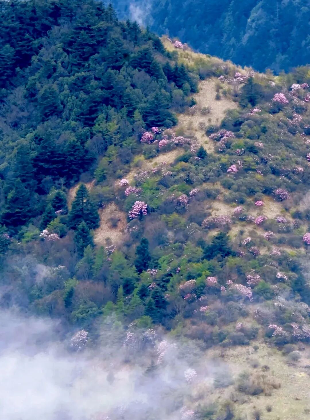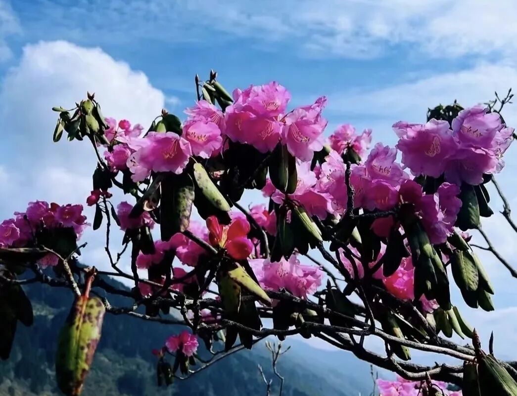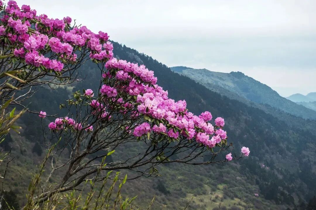 此行最高海拔老君山因传说古时太上老君曾在此炼丹而得名。这里山梁若苍龙下扑、溪流如银带飘垂、整个地区人迹罕至、原始洪荒、古树密布、有种走入电影绿野仙踪的场景。我们徒步穿越其间更能真正感受生命的力量!初夏时节高山杜鹃竞相绽放、而山顶云海则更为壮观!