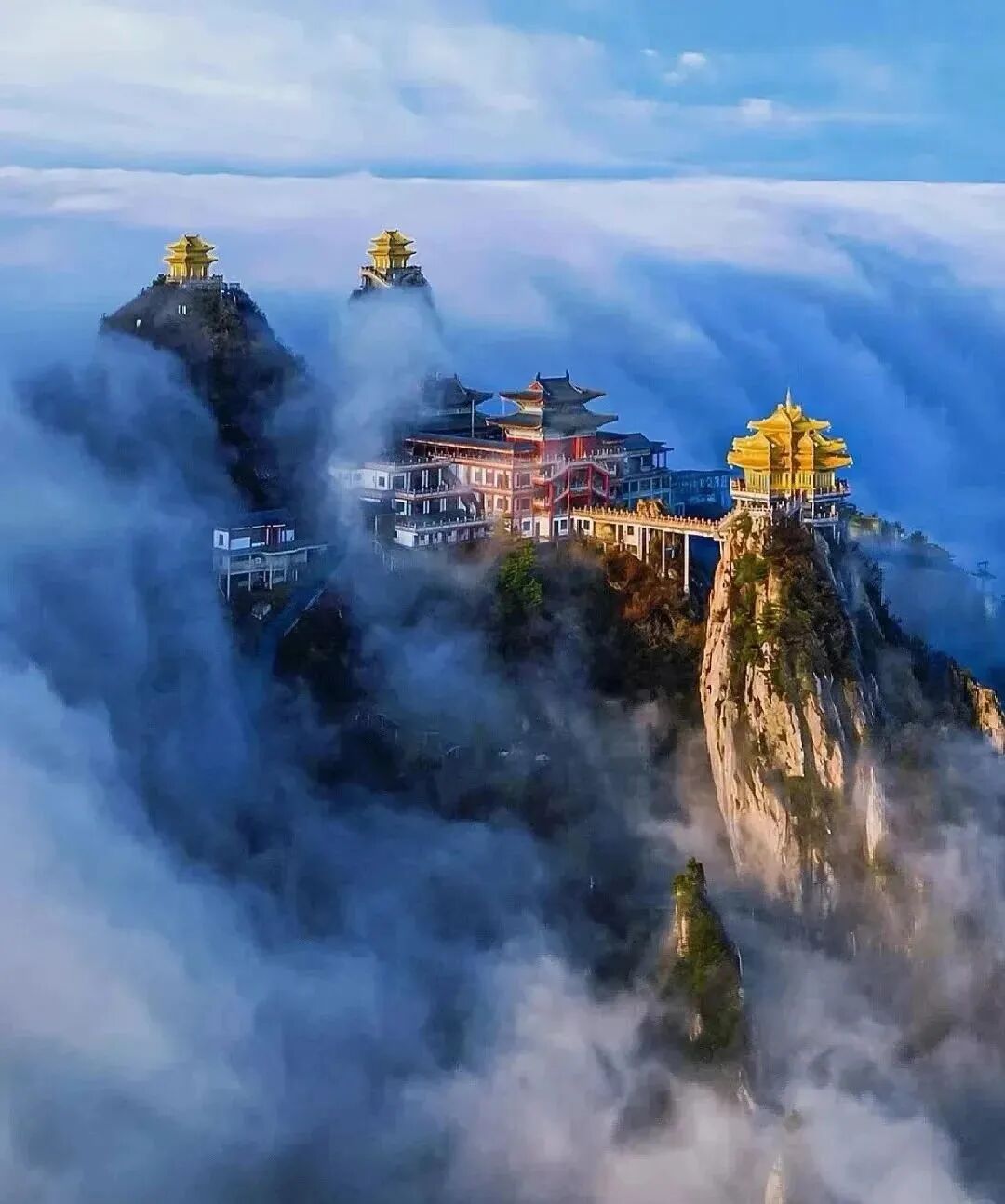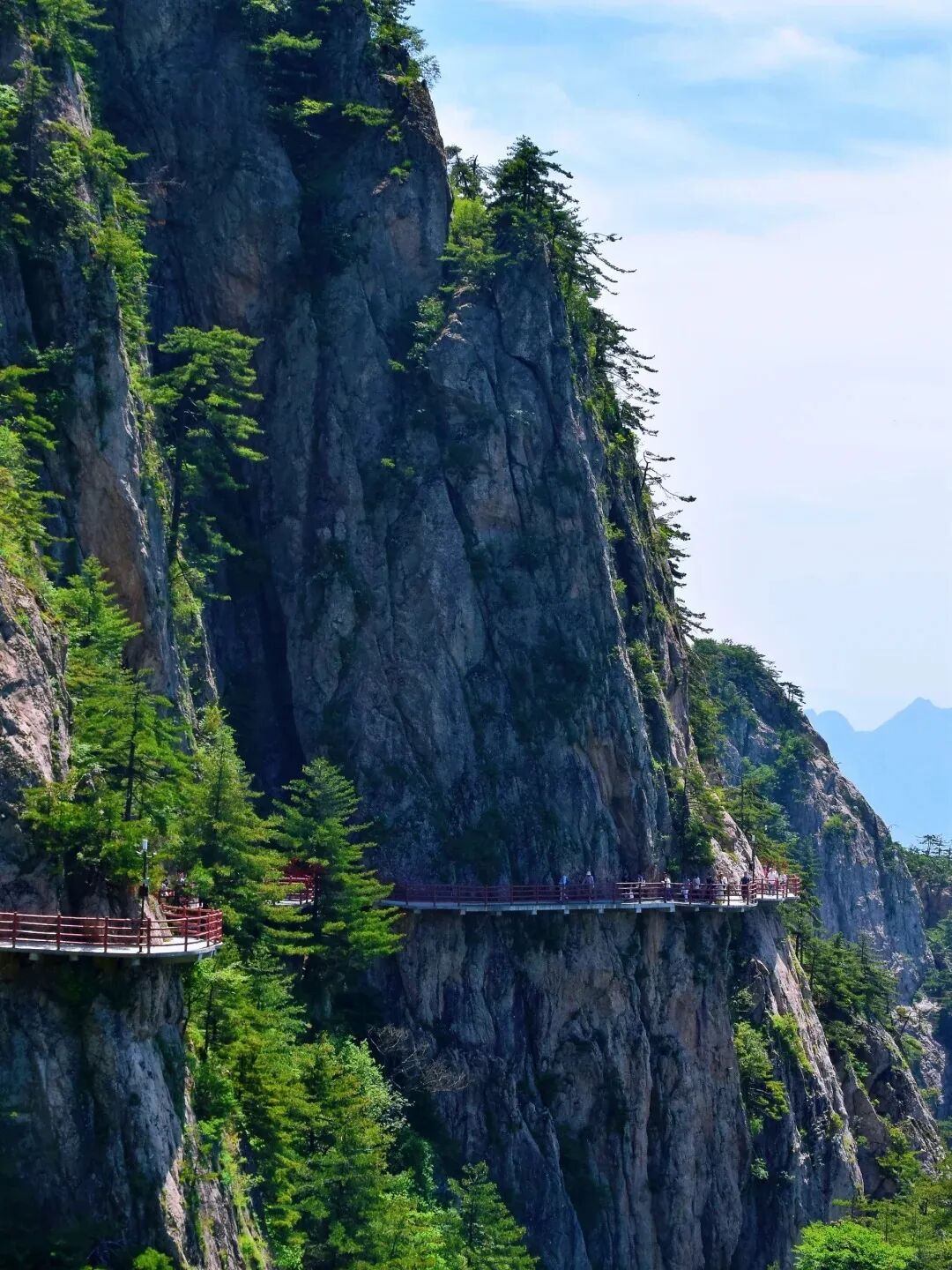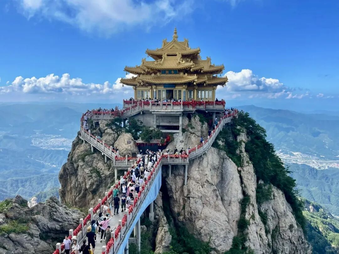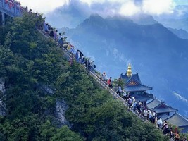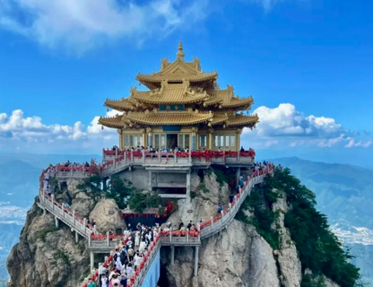 游览顺序:乘坐进口奥地利高速缆车-中灵索道,到达中天门,登518级生财道或者林荫步道,依次观救苦殿、菩萨殿、老君庙、南天门、玉皇顶、悬崖栈道、北国石林、主峰马鬃岭、高空玻璃观景台、舍身崖。之后乘坐索道下山。我们在老君山给大家留足够的时间游览。