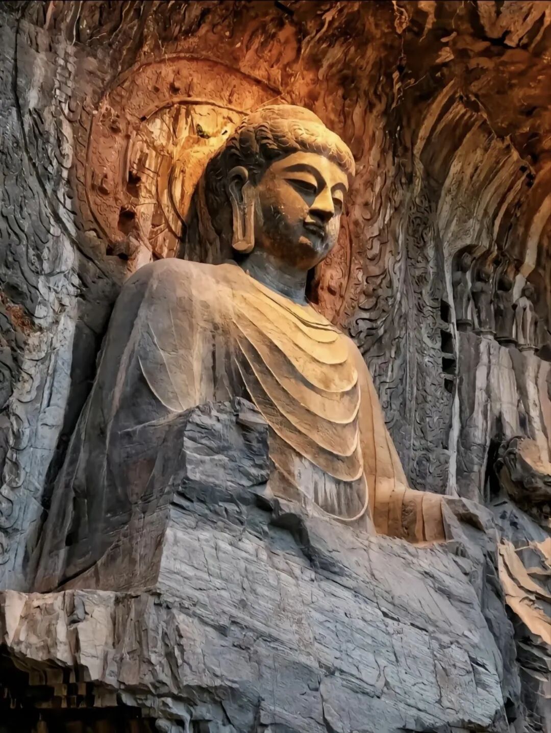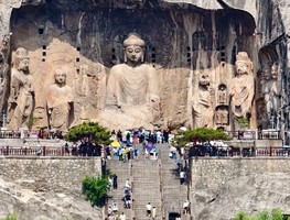 - 适时集合前往游览『龙门石窟』,欣赏北魏至东魏、西魏、北齐、隋、唐、五代的雕刻艺术。推荐大家重点参观西山石窟,这里是龙门石窟的精华,推荐大家主要浏览西山石窟,这里是龙门石窟的精华,可以从北门进入,先看到禹王池、潜溪寺、宾阳三洞、摩崖三佛龛、万佛洞、莲花洞、奉先寺、古阳洞、药方洞...也可以走香山寺、白园游览龙门石窟,我们会在这里停留一个下午,大家自由的游览。