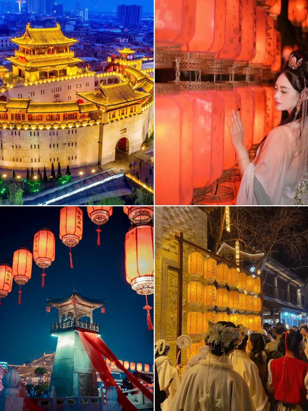 洛邑古城被誉为"中原渡口",以园区内文峰塔、文庙、妥灵宫、四眼井号等保护遗址为节点,以新潭、护城河水系为纽带,夜色灯光很美。大家可以尝尝河南有名的烩面,推荐当地美食如麻辣肝盖面、瓦窑沟沟口肉叮面、甘泉豆腐、甘泉豆干等等。