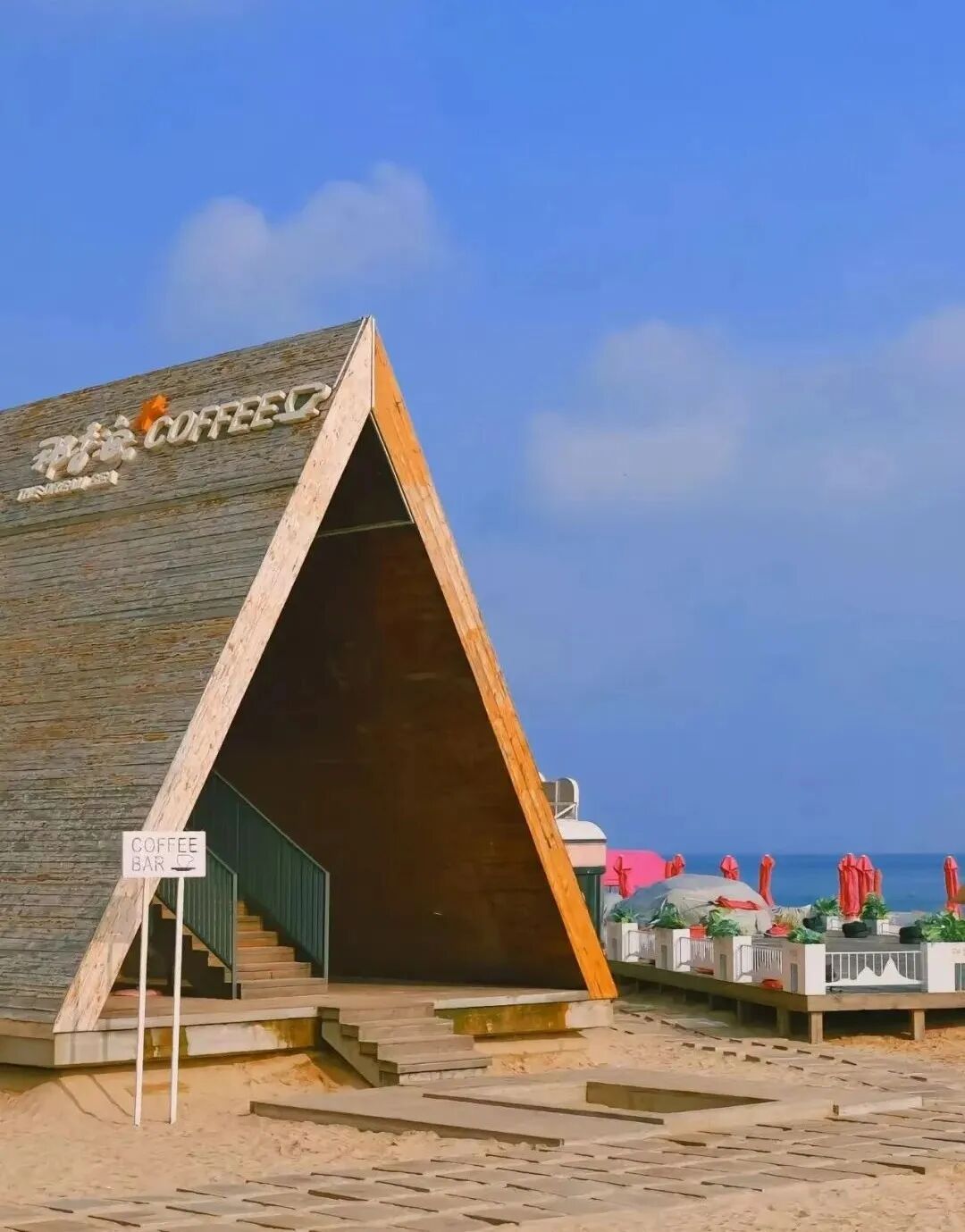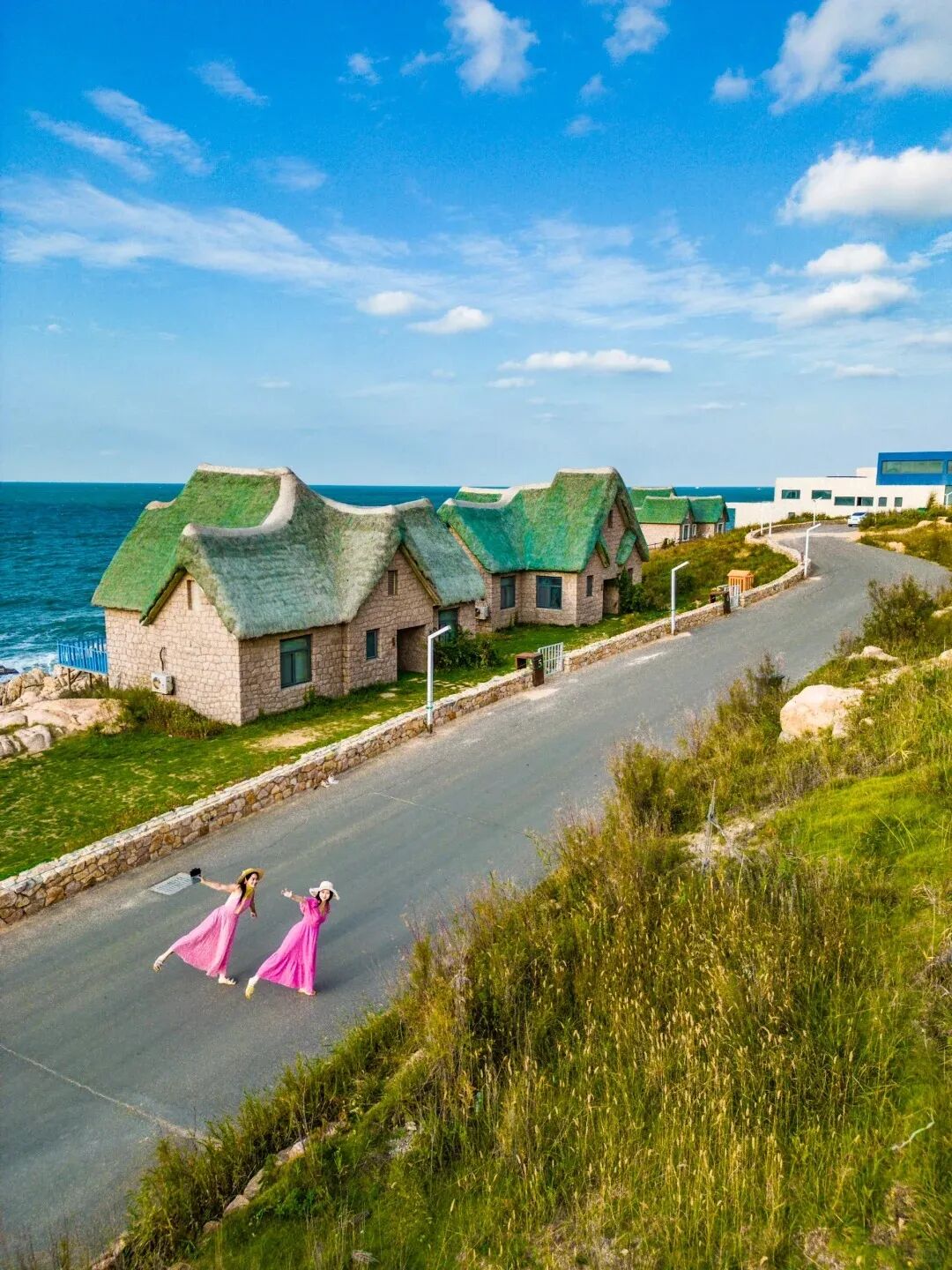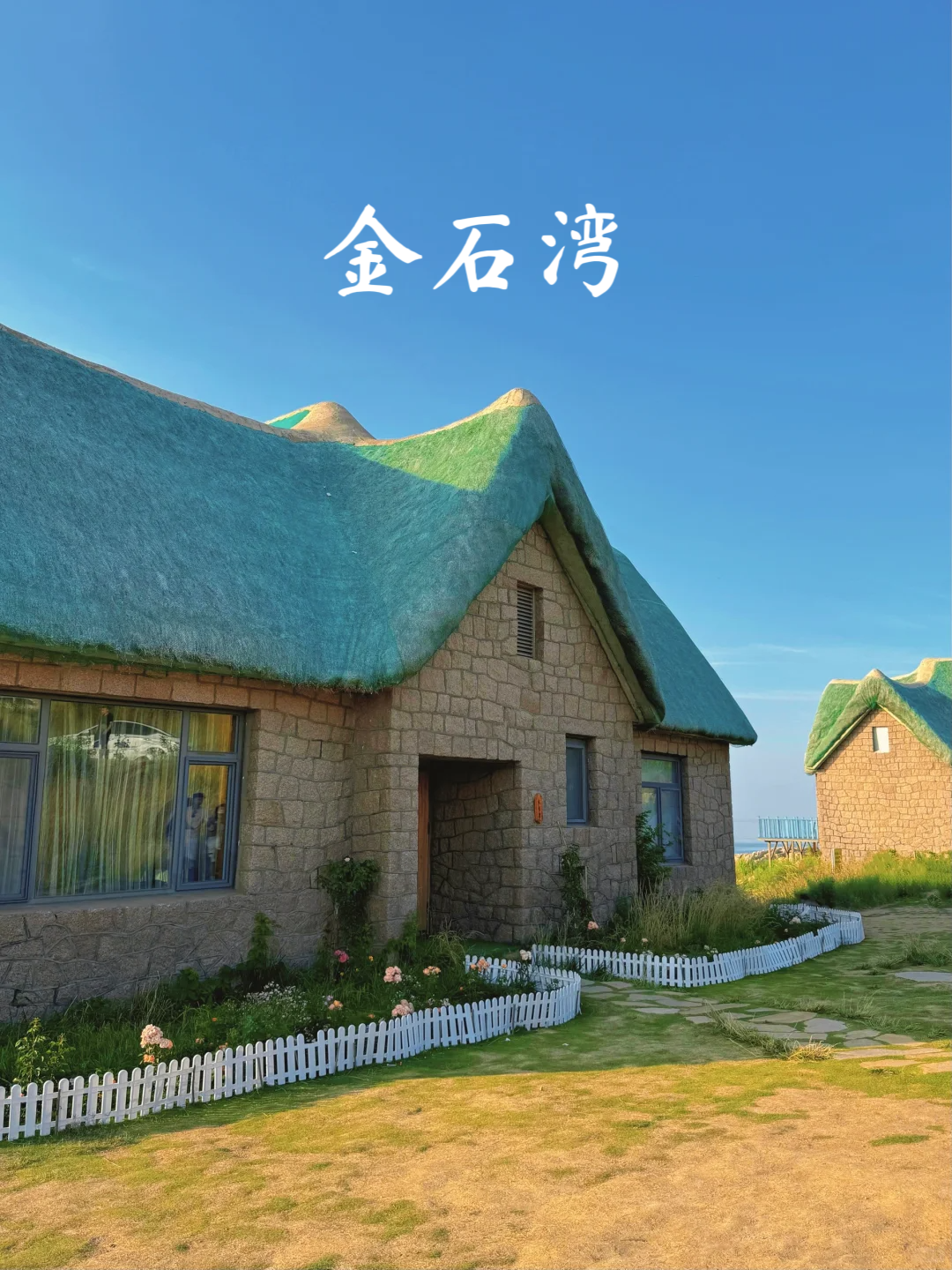 - 下午前往金石湾游览,闯入宫崎骏动漫里的海边小屋,打卡特色海草房。