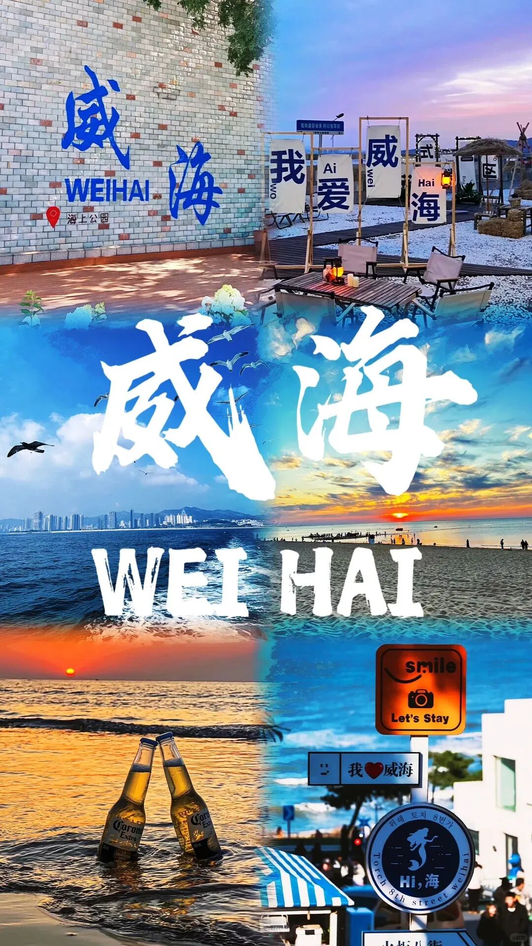 威海位于山东半岛东端,是一个美丽的海滨花园城市,花满街、树成荫,宁静、整洁的市容环境,使这里成为中国最适宜居住的城市之一。依山傍海的地理位置使威海海岸线绵长,海风吹动松涛;甲午中日战争使威海成为中国历史上“不沉的战舰”;与韩国的长期的贸易交流,使威海浸透着韩国的国际气息。沙滩美梦,海鲜美食,韩流时尚,这座小小的城市里收集了关于度假、美食、购物的一切梦想。