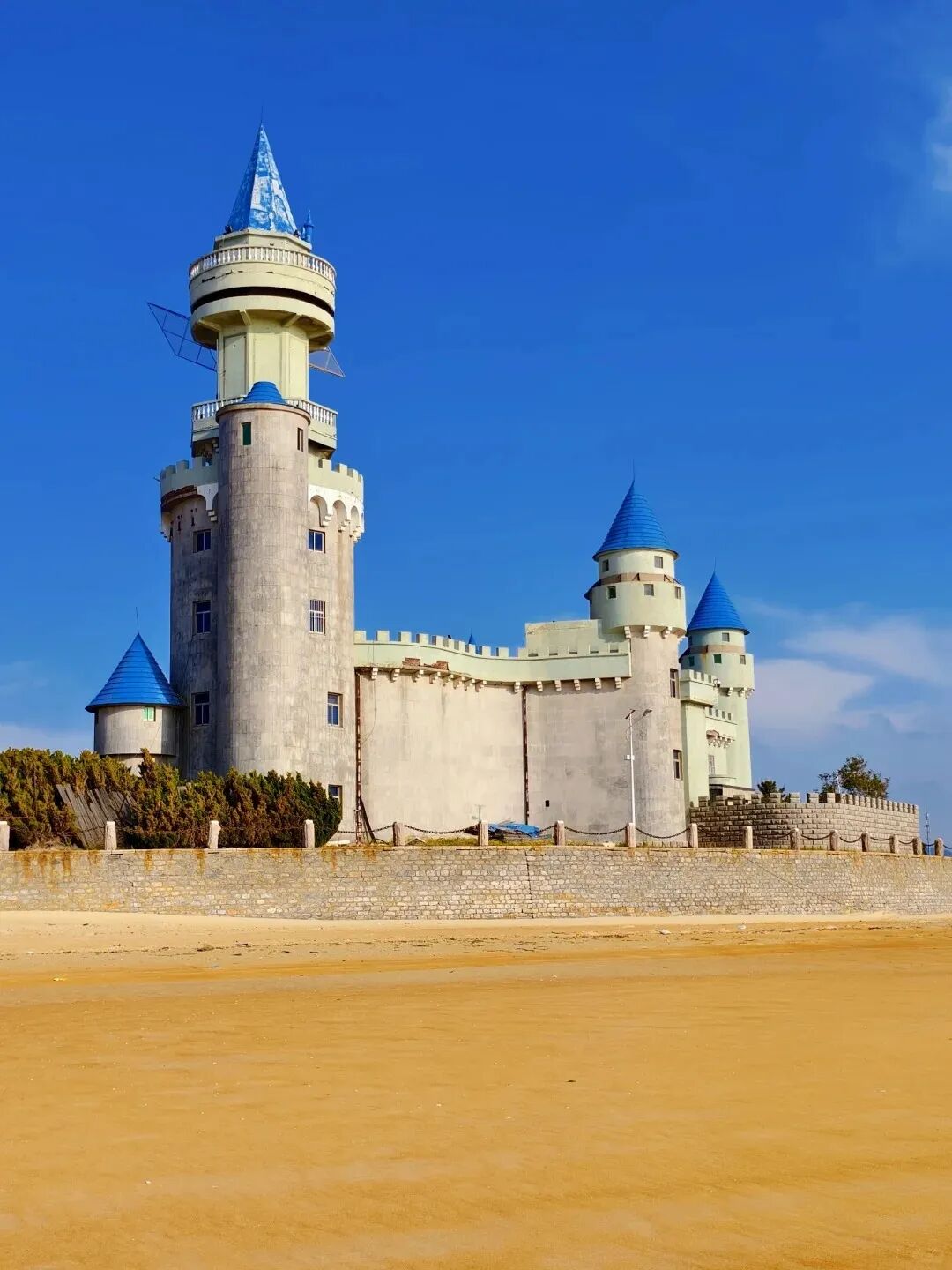 威海古堡威海影视城旧址 | 打卡小众沙滩,威海西边的中央电视台威海影视基地,果然不负所望。映入眼帘的就是大片的沙滩和海水,随处可见的也是破败的影视城旧址,有点萧瑟的感觉。海边的风很大,吹得风沙迷人眼,等待日落的过程很漫长,但是总是心存期待。虽然最后因为云层过厚没有看到完整的日落,但是废弃的城堡,大片的沙滩,也是令人惊喜