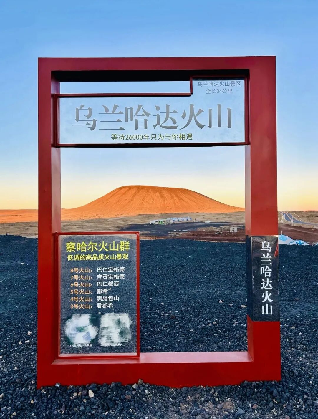 - 早餐过后集合前往乌兰哈达火山。【乌兰哈达火山】美丽的乌兰哈达火山在草原上矗立了万年,被《美国国家地理》杂志誉为“中国最美火山群”。我们爬上火山口,去一探究竟!这里有三座中心式喷发的炼丹炉火山,我们主要参观的地方是4号火山(黑脑包+火山博物馆)、5号火山(中炼丹炉)、6号火山(南炼丹炉),同时我们还能远观7号火山(北尖山)、8号火山(南尖山)。在火山的侧面,我们还能看到当年火山喷发后留下的凝结的岩浆,和碳的颜色相似,但是由于有硫磺等物质,表面会泛着七彩的颜色,非常好看。这里的风也非常大,大家要注意防风防晒!