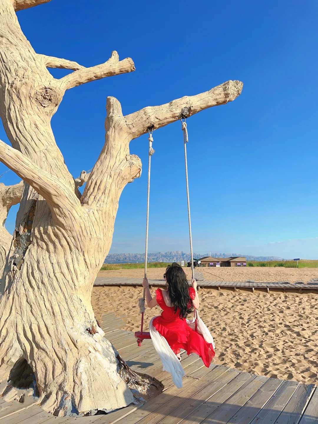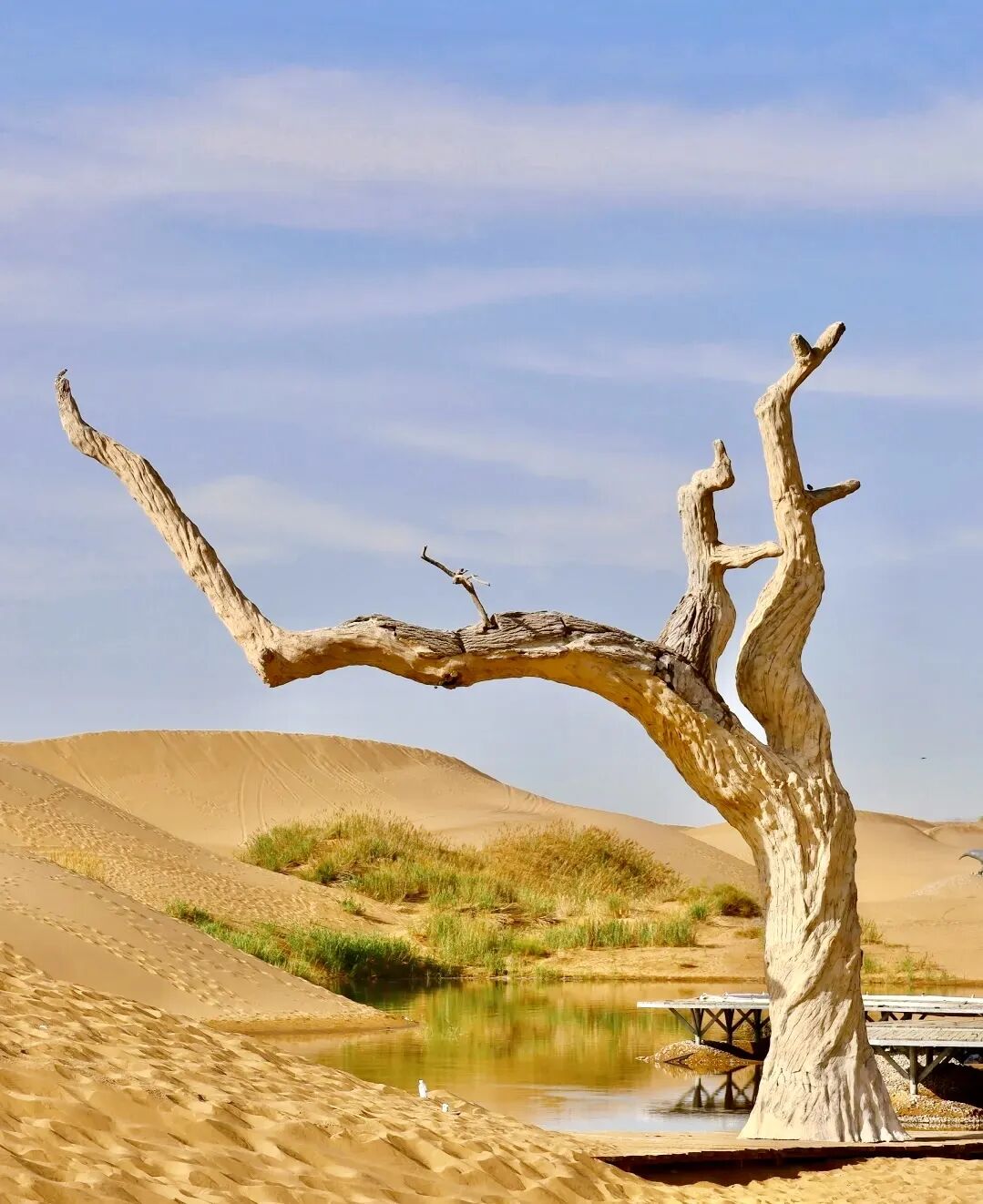 乌海湖一半沙漠一半海,即孤独又浪漫的地方,不但能拍到沙海共存的景象,里面的枯树也尽显科幻感,尤其是站在沙漠公路看向城市时还有一种海市蜃楼的既视感,真的特别震撼!这里不光拍照出片,还有沙漠越野车、水上摩托艇、沙漠骆驼等游玩项目。