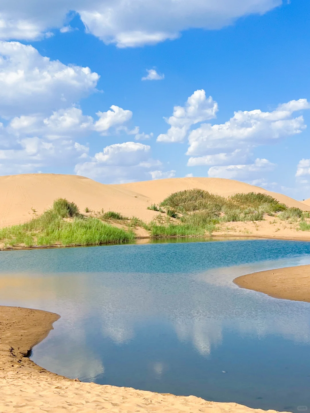 - 下午到达“草原阿那亚”【涝利海】打卡拍照。来涝利海体验一场逃离人间的治愈之旅,传说中的"草原眼泪"涝利海。这里也是《再见爱人》同款拍摄地,在这片旷野里的短暂停留,内心平静详和喜悦,时间仿佛静止一般。涝利海是藏在草原的天然湖泊,湖水清澈到能倒映整片天空!湖边芦苇荡随风摇曳,远处是连绵的草甸和成群的牛羊,随手一拍都是壁纸级画面~春秋季还能偶遇天鹅、遗鸥,生态感满分。