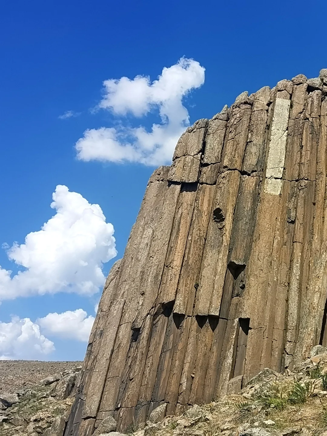 古力脑包火山地质公园位于乌兰察布正南方向,在大同前往乌兰察布的必经之路上。这片独特的六棱玄武岩柱已经距今2500万年了。第三纪晚期的某一天,火山岩浆从地表喷射而出,缓慢而逐渐静止的岩浆,受环境影响,均匀的冷却,慢慢形成了如此独特的地质地貌。