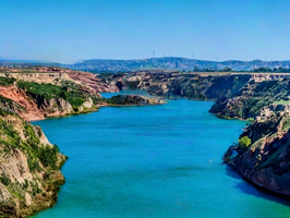 - 下午集合前往靖边凤尾岩水上丹霞 | 丹崖碧水 霞影流光,距离波浪谷几公里,这里是典型的丹霞地貌,火红的岩石层层叠叠,还有一池绿宝石般的湖水!如此静谧,镶嵌在这黄土大地之上,坐在岩石边望向湖水,整个世界都安静了下来!最关键是一处免费的丹霞。走到到崖顶,俯瞰赤红砂岩如熔浆涌入蓝绿湖水,比波浪谷更原始、更美。沿护栏上行可至水上丹崖,还能拍到“爱心湖”“鳄鱼游湖”全景。沿着右手边的小路下往下看去,居然还有一小片沙滩可玩耍。