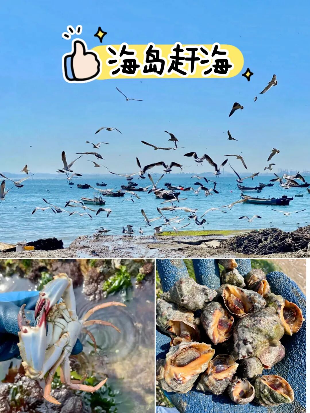 *赶海的海鲜可现场加工,海参受保护不要捡,海螺每人限量2斤。