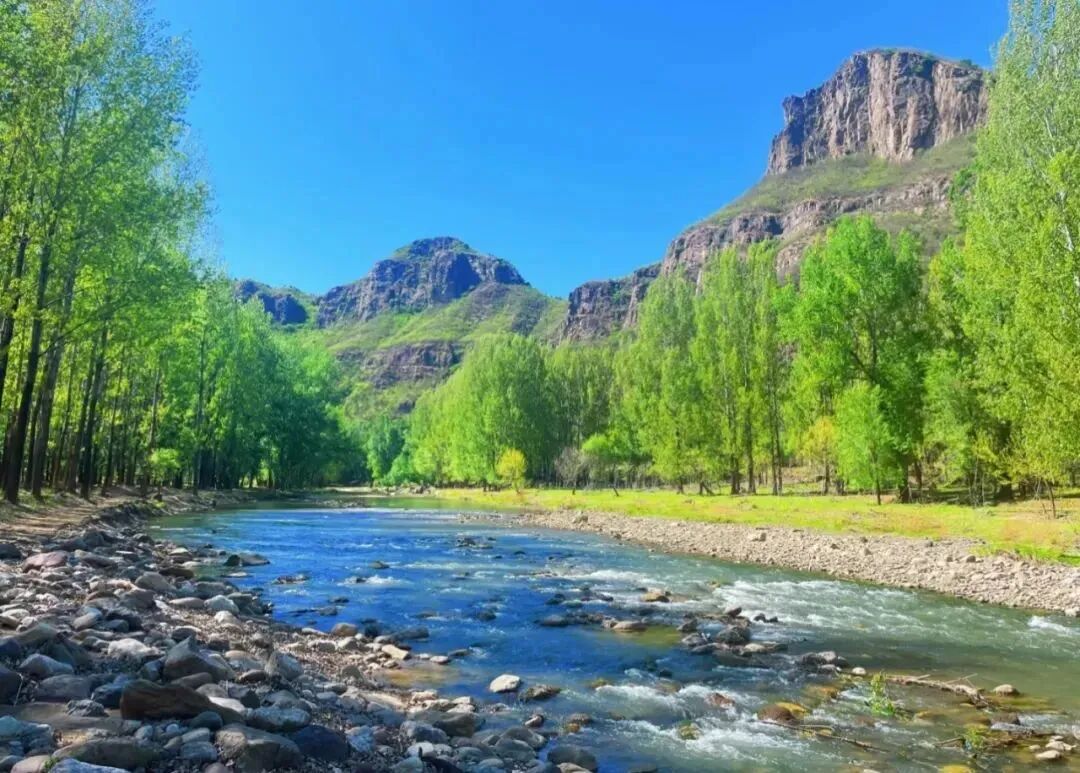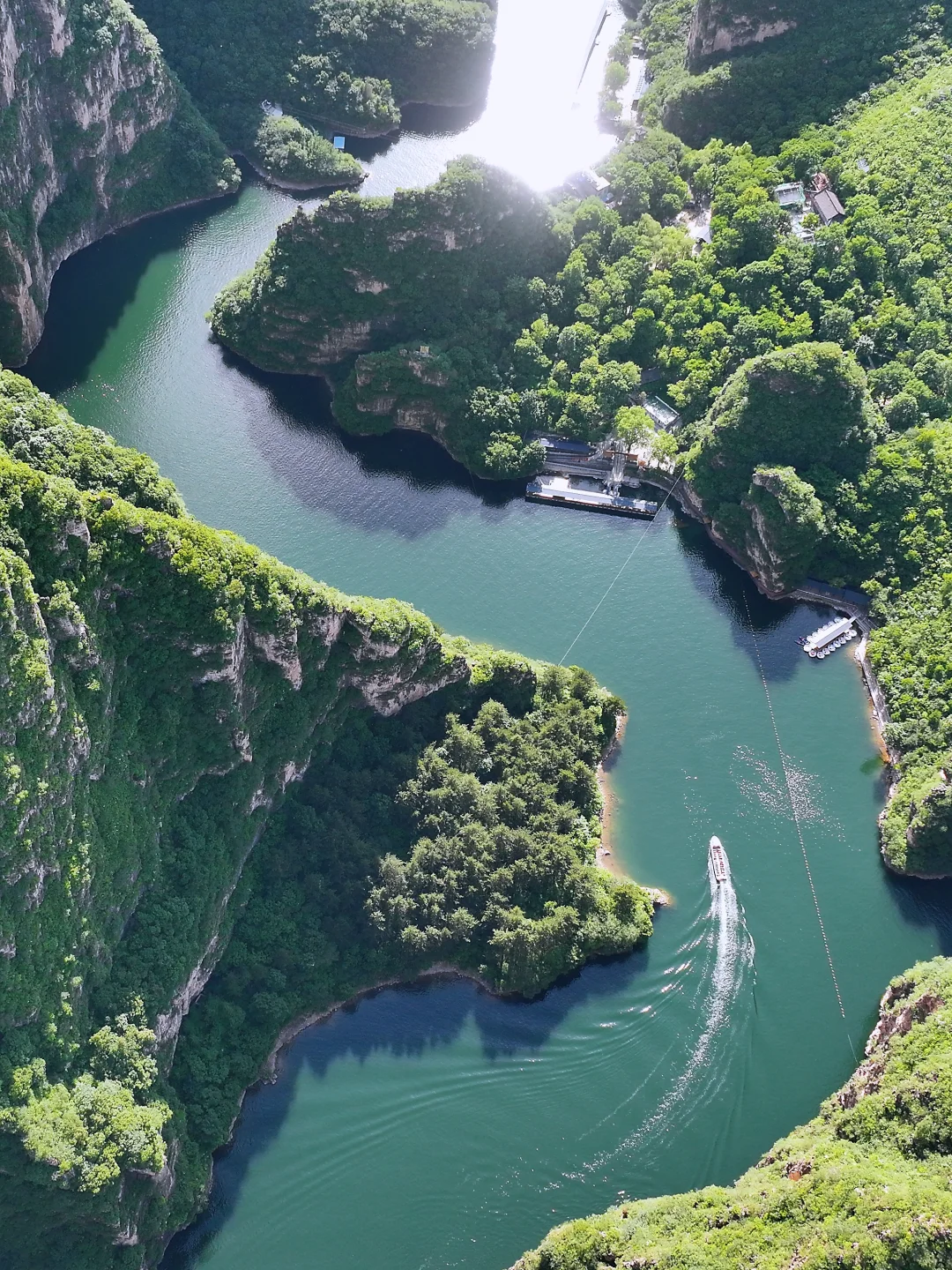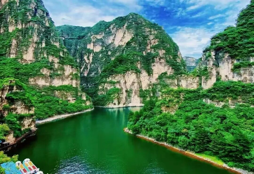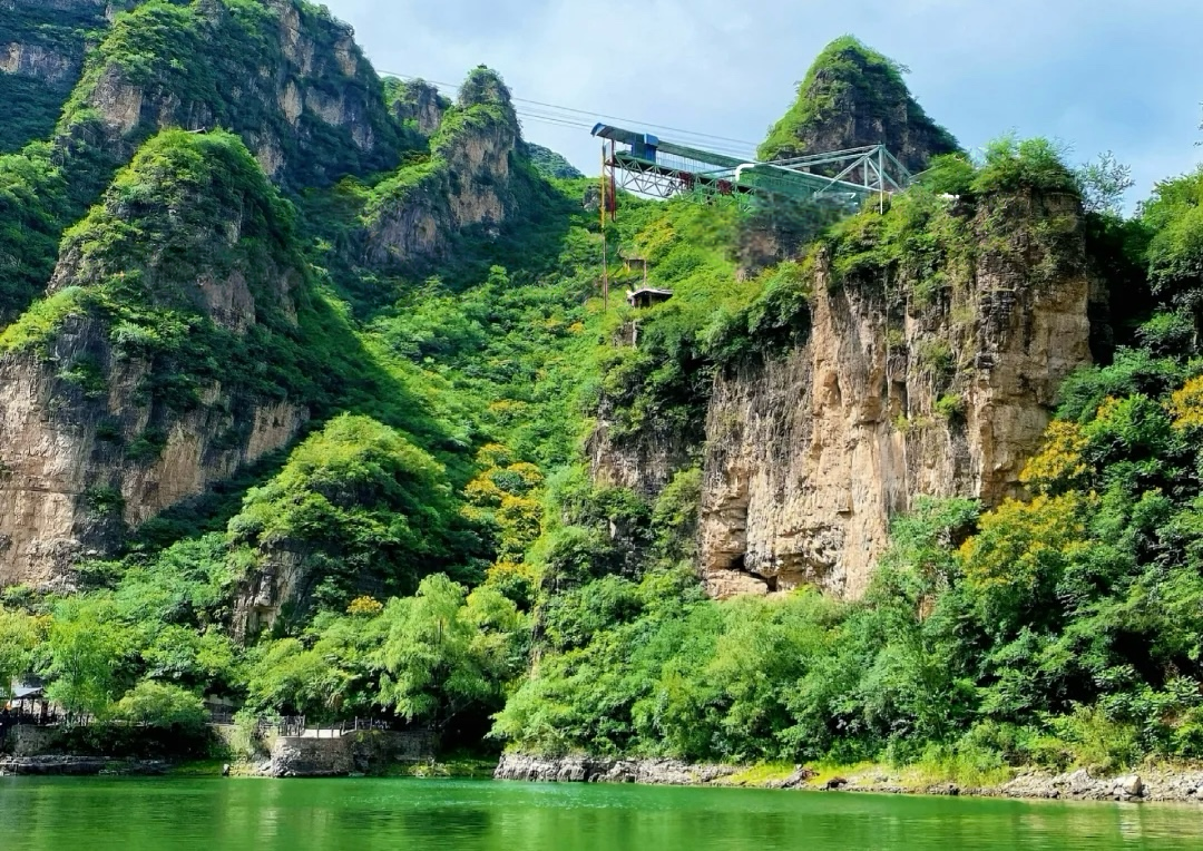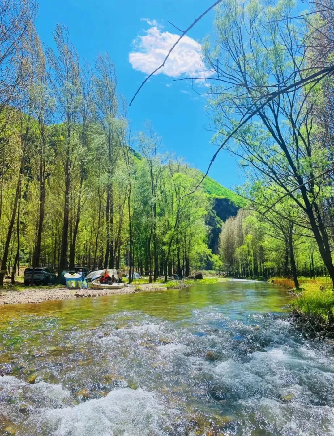 - 适时集合,我们前往【百里画廊】游览,首先游览『干沟』。车行至干沟,见百里山水画廊之标牌、为官方确定的画廊起点。这里有北京旅游咨询服务处,可获得画廊线路上的景点等信息。干沟村,也是百里画廊景区内的起始村,依山傍水,环境清幽。- 适时集合前往『奶山湖』游览。