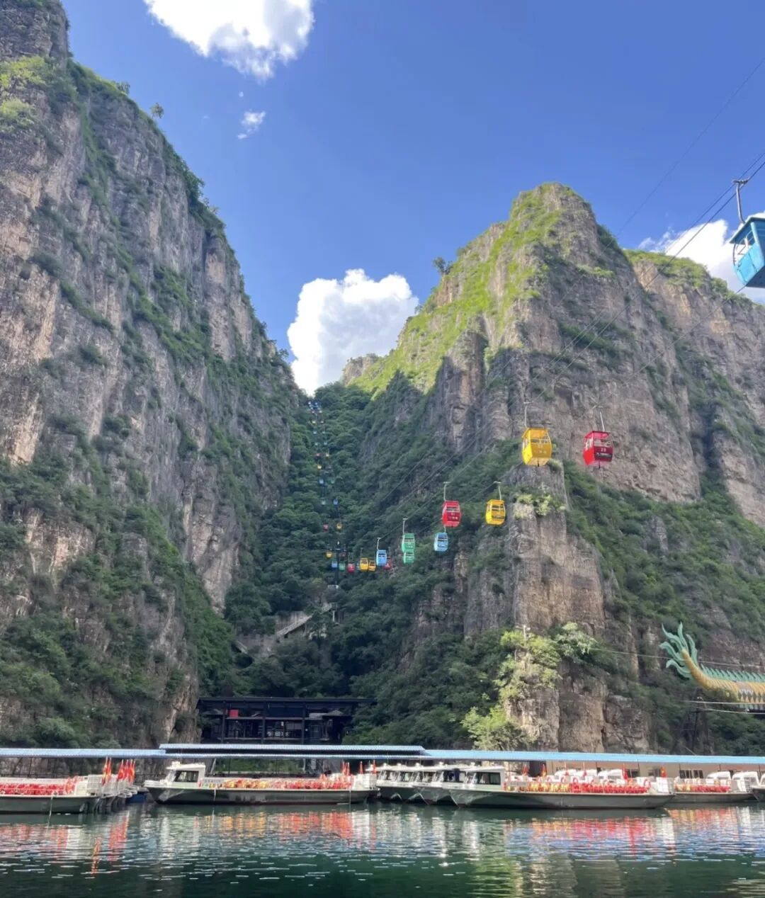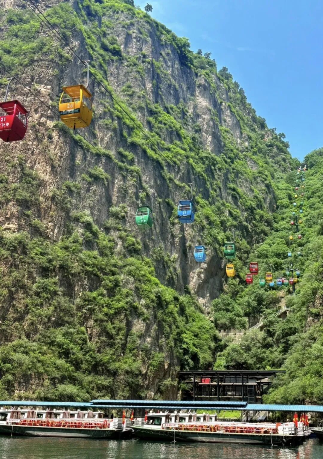 -上午到达【龙庆峡】游览。在已开放游览的7公里长的库区,共有近30余处景观。两边的崖岸之上,有镇山如来、石熊跳岩、九连洞、鸡冠山、金刚山、马蹄潭、将军岩、金刚寺遗址等奇峰怪石,堪称“塞外一绝”。游船驶抵“九曲湖”的一座小码头,可以弃舟登岸,沿山谷步行而上,有神仙院、仙人棋、老虎嘴等景点。然后乘龙梯上到大坝顶,坐船游览龙庆峡,从金刚寺码头下船,游览金刚寺景区,然后从月亮湾码来头上船,回到百花洞口,坐缆车上神仙苑,坐缆车下山到百花洞口,出龙庆峡。你要是不想坐缆车,就在坐玩龙梯后,乘船之前从楼梯徒步登山到神仙苑景区,然后原路下山,再坐船玩龙庆峡,以后的游源览顺序,参照以上。