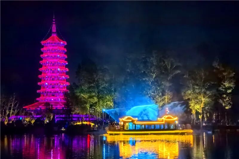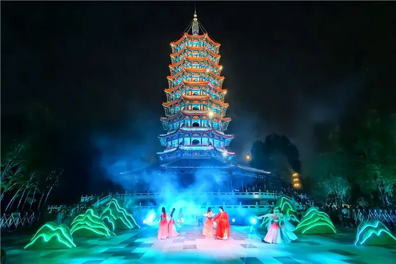 妫河夜话《妫河夜画》演出以“妫水女的传说”为故事主线,讲述了妫水女与舜共同驯服野象,带领人们在妫水河畔开拓农耕文明、游牧文明,并将其发展至繁荣的故事。演出以妫河为天然剧场,观众将乘船穿行于妫河之上,泛舟赏景、观演出、听音乐,领略人景相融的美妙。