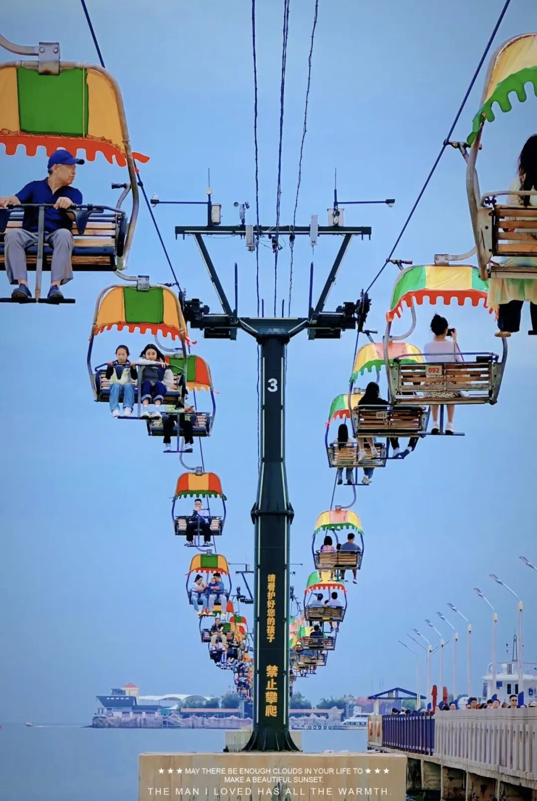 - 早餐后,我们前往网红『仙螺岛』,乘坐国内唯一的千米『跨海索道』上岛,吹着海风,穿过海面,在虚无缥缈间感受海上风光。