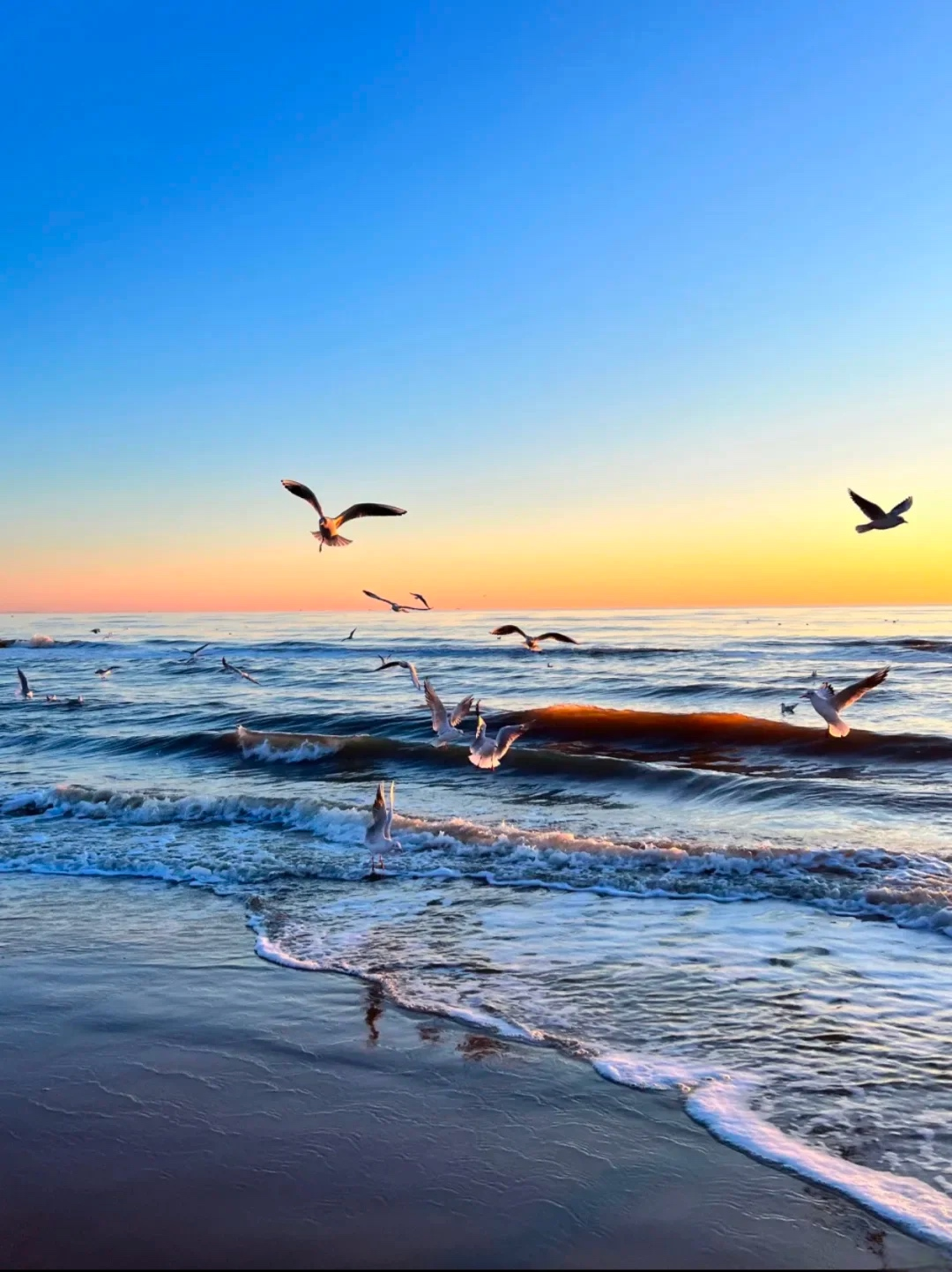 北戴河欢乐湾浴场,沿着海岸线漫步,海风轻轻拂过脸颊,带着淡淡的海水味道。远处的海浪一波接着一波,拍打着岸边,发出悦耳的声音。偶尔还能看到几只海鸥在海面上翱翔,画面美得就像一幅画。