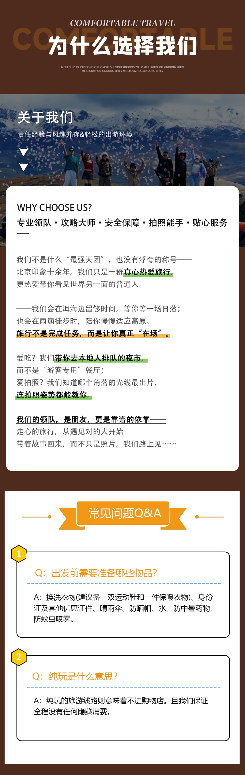 2)活动出发前会统一给大家发集合信息(微信或短信),包括领队电话、集合时间地点、车牌号等活动信息,队员请以集合信息为准准时集合;车上座位顺序为集合时先到自由选择,全程原车原位;迟到视为自动放弃后续行程,请恕费用不退。