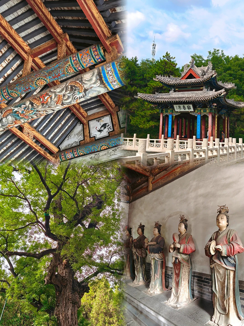 晋祠是中国现存最早的皇家祭祀园林,被誉为“古建筑博物馆”,建议跟随导游按中轴线游览,重点打卡“三绝”。先看距今3000年的**周柏唐槐**,苍劲挺拔见证岁月;再赏**难老泉**,晋水源头常年恒温,泉水清澈叮咚;最后参观**圣母殿宋代侍女像**,43尊侍女神态各异、衣袂飘飘,是宋代彩塑巅峰之作。还可漫步水镜台、鱼沼飞梁、金人台,感受古代园林与礼制建筑的完美融合,全程约2.5小时,细细品味三晋文脉源头。