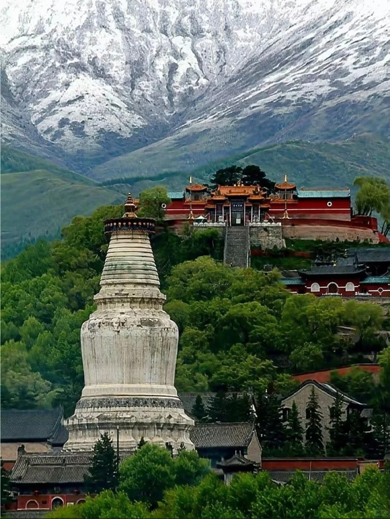 塔院寺(白塔寺)以大白塔为标志,高56.4米,内藏释迦牟尼舍利,白塔为元代尼泊尔匠师阿尼哥设计,信徒绕塔祈福,毛泽东1948年曾路居寺内方丈院。五台山寺庙群是宗教圣地,更是建筑、雕塑、文化的瑰宝,2009年被列为世界文化遗产。