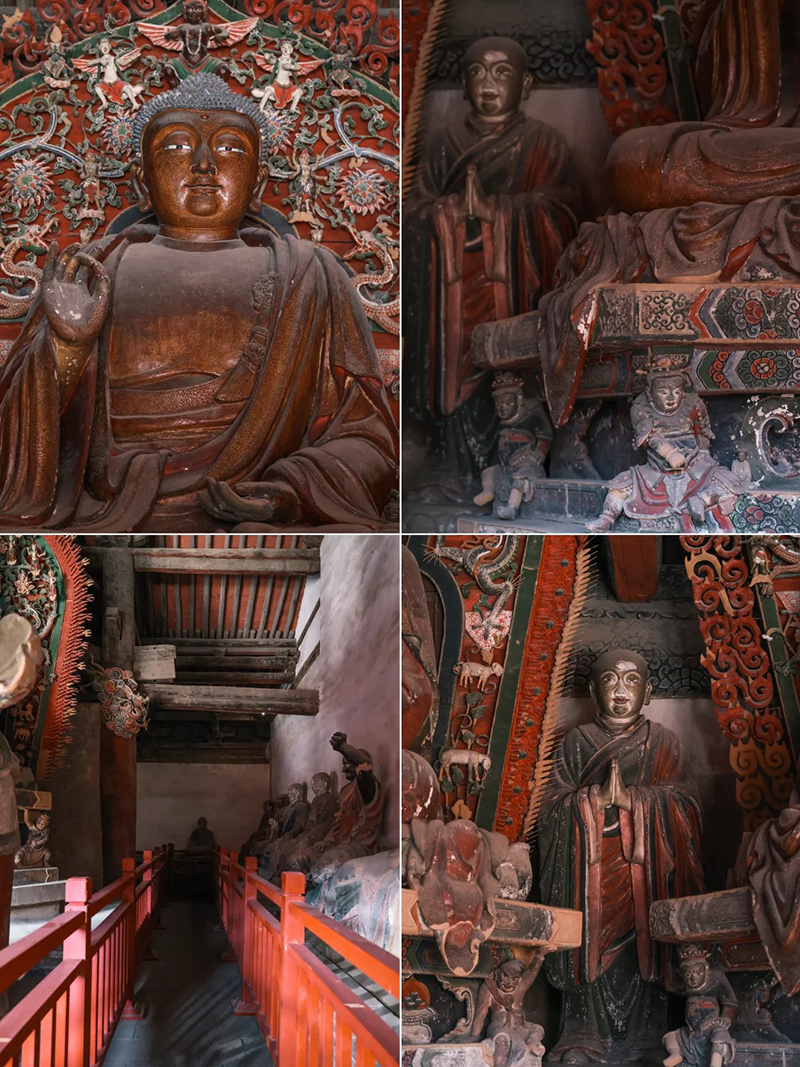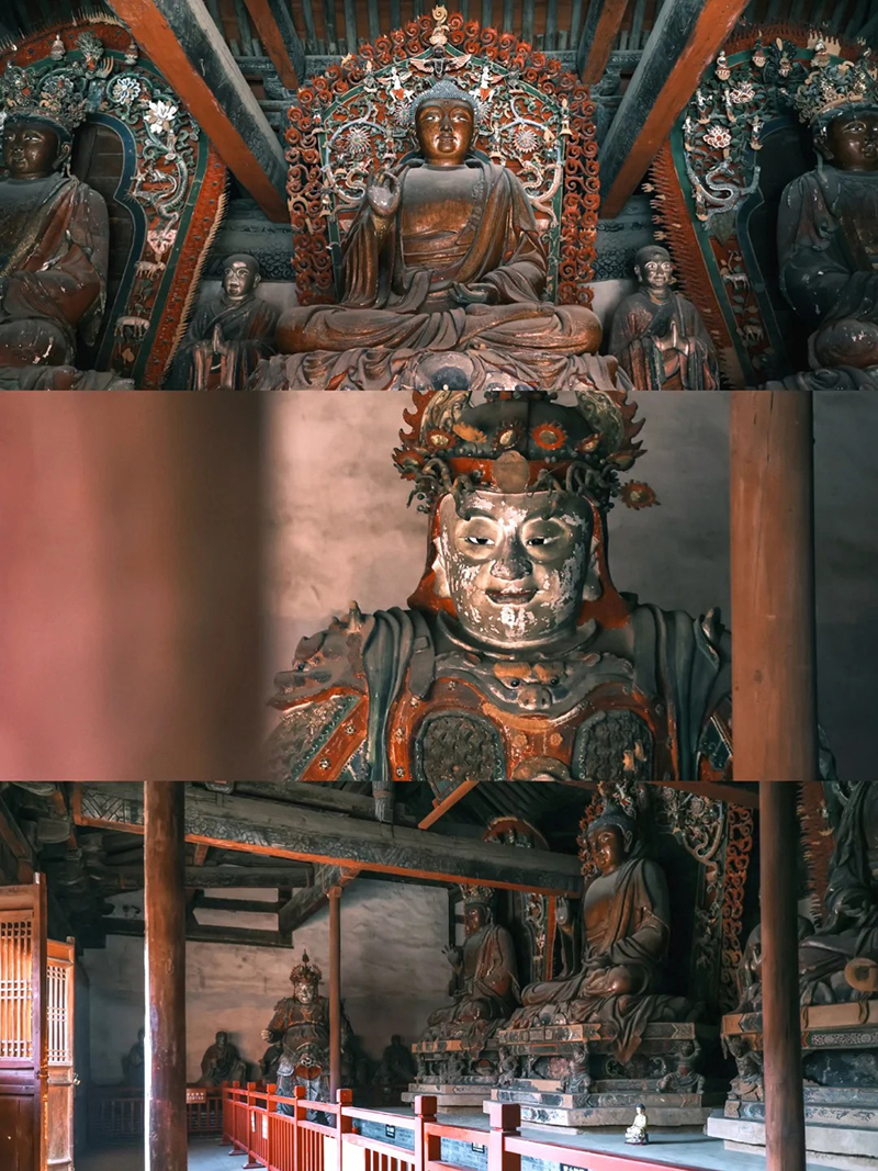 五台广济寺以元代建筑与彩塑闻名,是五台山元代艺术珍品。寺院不大但精华集中,大雄宝殿采用元代减柱造手法,空间开阔大气。殿内24尊元代彩塑为镇寺之宝,主尊释迦牟尼佛面相丰满,文殊、普贤菩萨骑乘狮象神态优雅,十八罗汉与金刚造型生动、衣纹流畅,是北方元代彩塑的杰出代表。漫步殿内,近距离欣赏古代造像艺术,感受古朴禅意,游览约1小时,安静小众,人少景美。