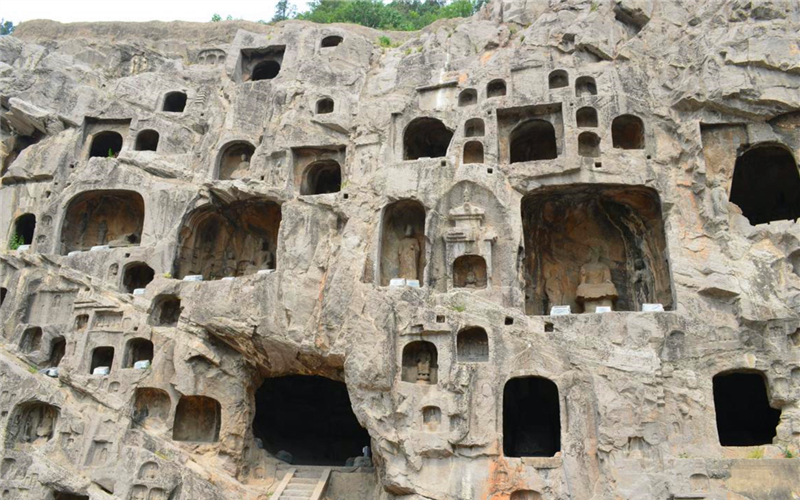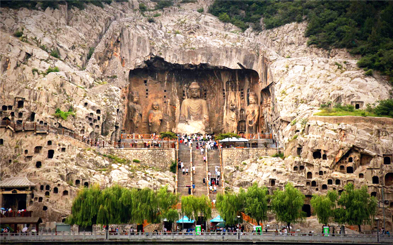 龙门石窟——开凿于北魏,后陆续建造四百余年,长达一公里的悬崖峭壁上凝结了古人的智慧与文化。北魏时期雕凿的众多洞窟中,以古阳洞、宾阳中洞和莲花洞、石窟寺这几个洞窟最有代表价值。共有97000余尊佛像,其中西山石窟是精华部分,包括卢舍那佛像和“龙门二十品”。唐代龙门石窟的重点洞窟中,以规模宏伟、气势磅礴的大卢舍那像龛群雕最为著名。